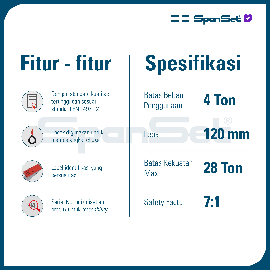 [B4000] SPANSET Webbing Sling Double Ply 4 Ton, Safety Factor 7:1, Tali Angkut & Angkat Beban / Sling Belt, Polyester