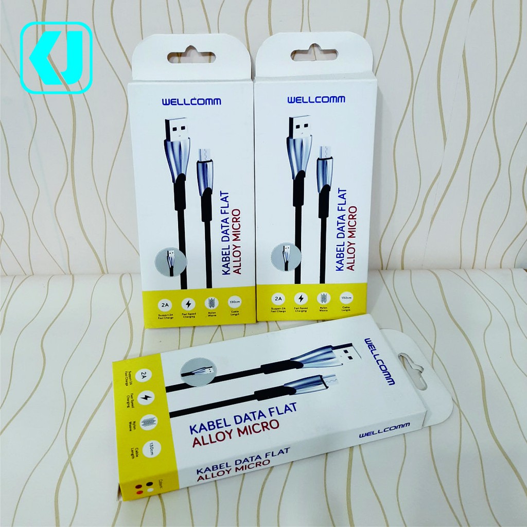 Wellcomm Kabel data Flat Alloy Micro 2A Fas Charging panjang 130 Cm