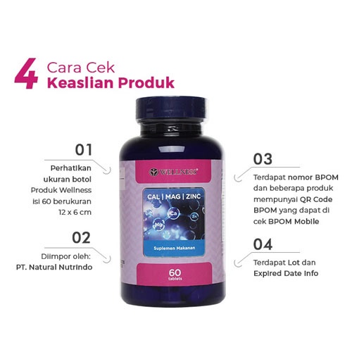 Wellness Cal Mag Zinc isi 60 Tablet / kalsium/Vitamin D/Suplemen Tulang/keropos tulang/Osteoporosis