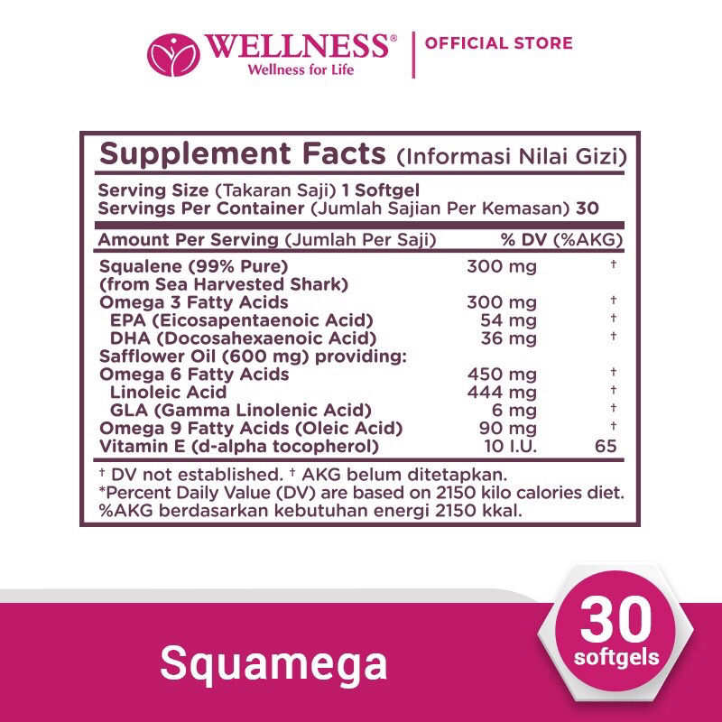 Wellness Squamega Squalene + Omega 3,6,9 isi 30 Fish Oil Minyak Ikan Kolesterol