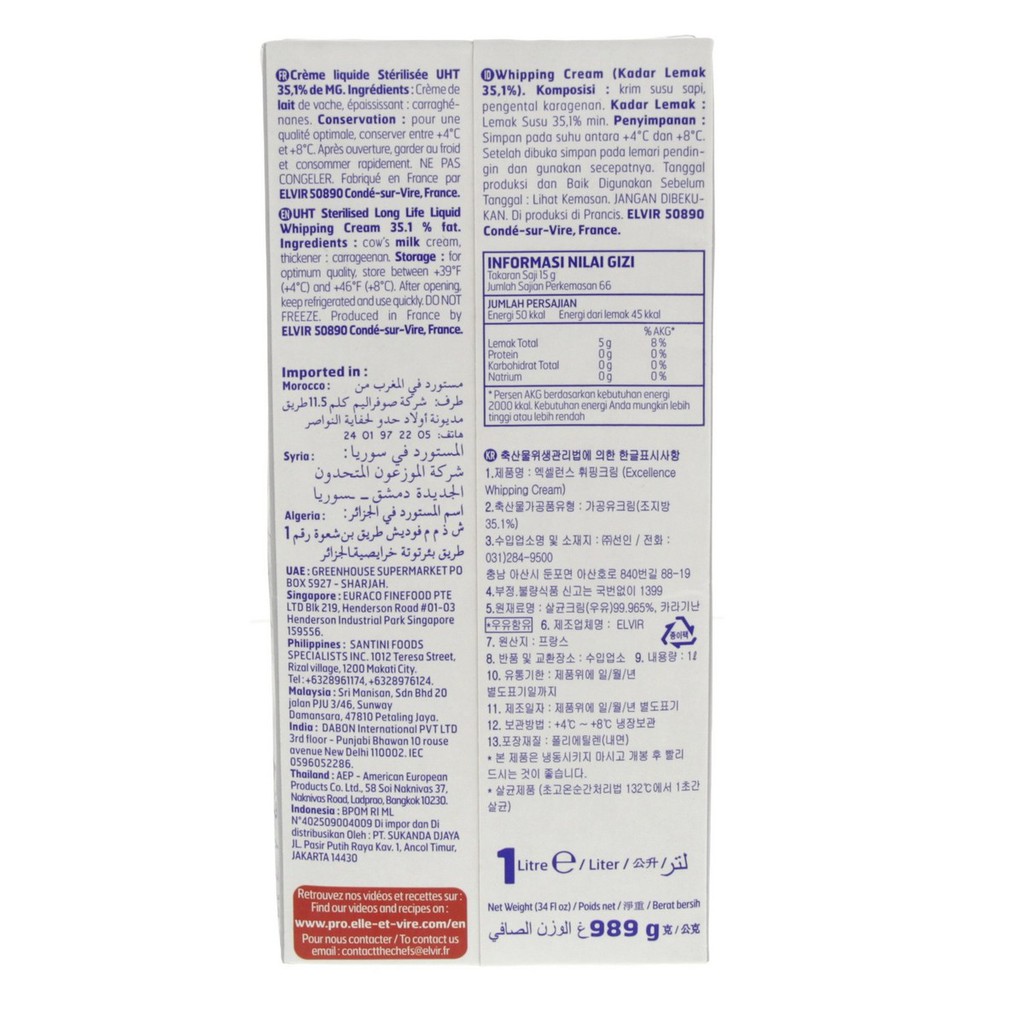 Whipping Cream Elle & Vire 1 Liter Whipped Cream Whip cream cair wipped cream wiped cream