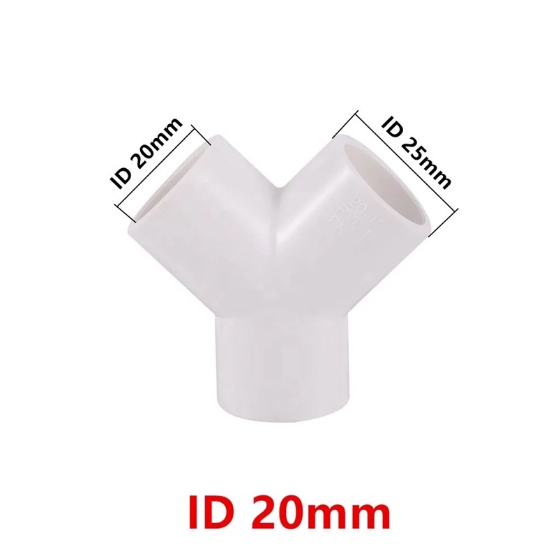 White Fitting 3 Way arah Cabang Y Inner Diameter 20mm for Pipa PVC 1/2 Inch Pipe Fitting Hidroponik Konektor Joint Pipe Y Shaped Connector Fittings Hydroponic | 2.007.0602 | YL-12833