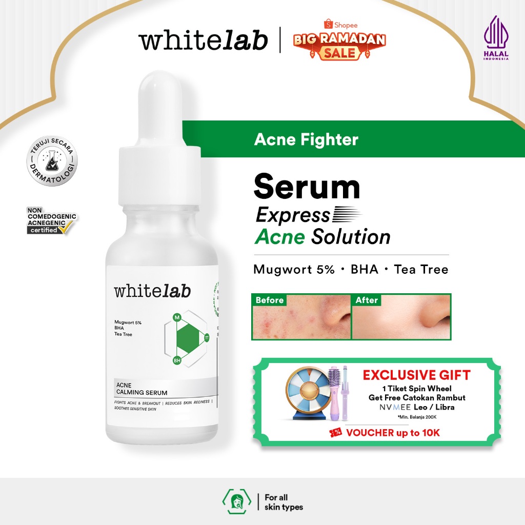 Whitelab Acne Calming Serum - Serum untuk Kulit Jerawat, Bruntusan, dan Berminyak dengan Mugwort, BHA & Tea Tree [BPOM]
