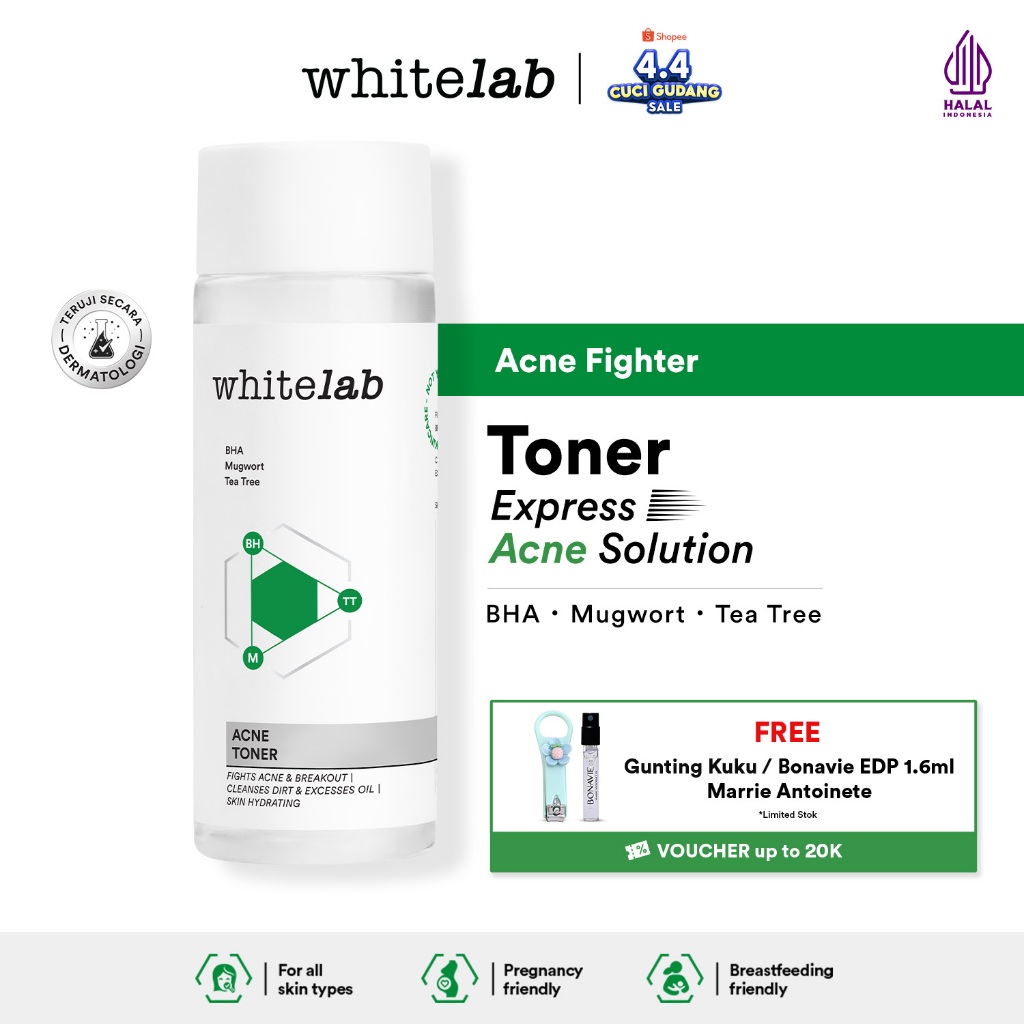 Whitelab Acne Toner - Toner Untuk Kulit Jerawat Menenangkan dan Mengontrol Minyak Berlebih dengan Bha, Mugwort & Tea Tree [BPOM]
