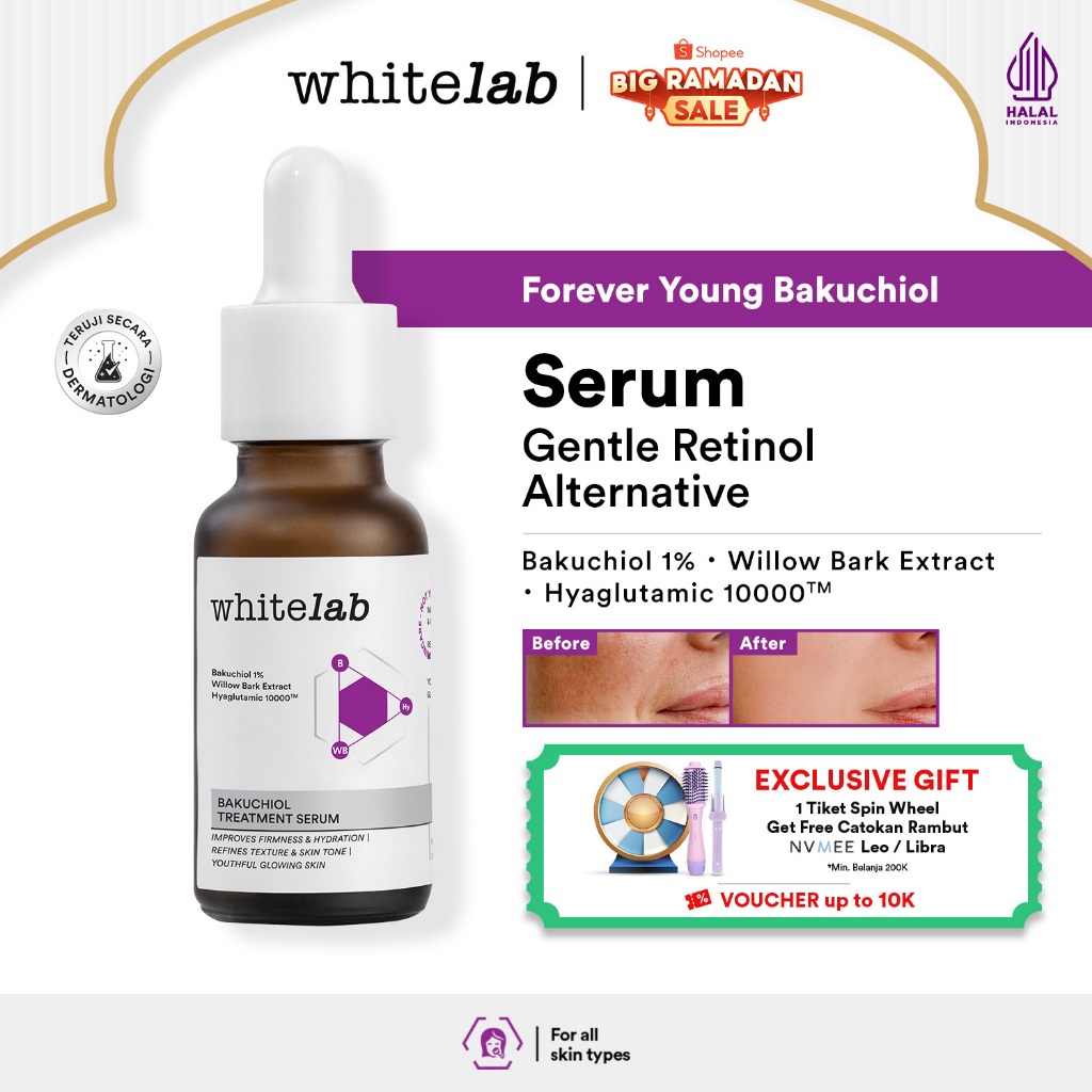 Whitelab Bakuchiol Treatment Serum - Atasi Jerawat dan Bruntusan Alternatif Retinol dengan Bakuchiol & Hyaglutamic [BPOM]