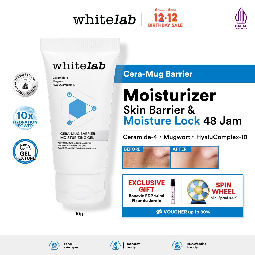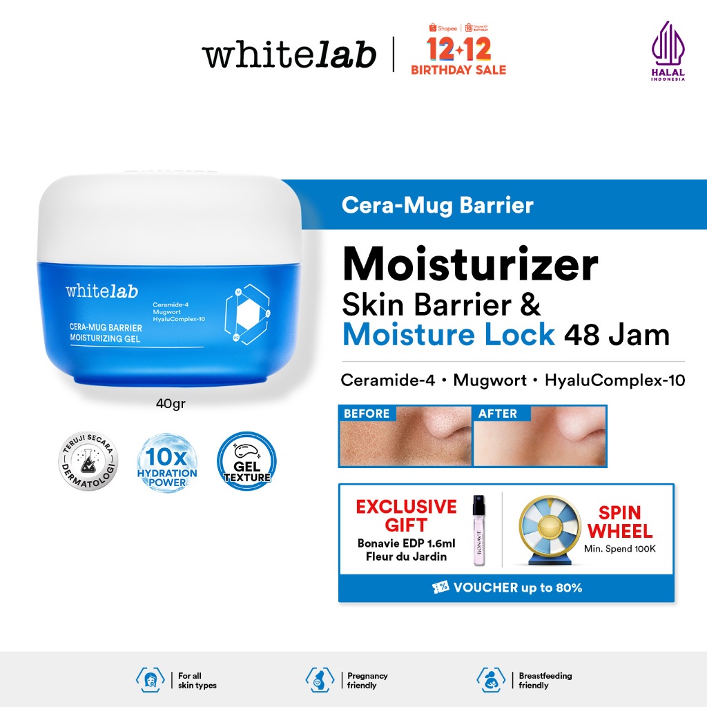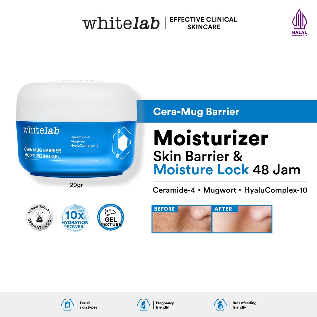 Whitelab Cera-Mug Moisturizer Gel untuk Skin Barrier - Pelembap Kulit Wajah Kering Siang Malam Cera-mug dengan Hyaluronic, Ceramide