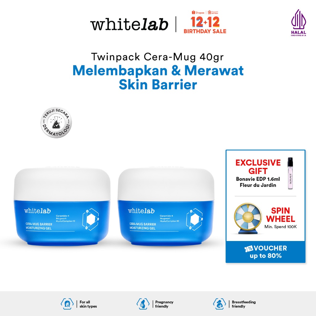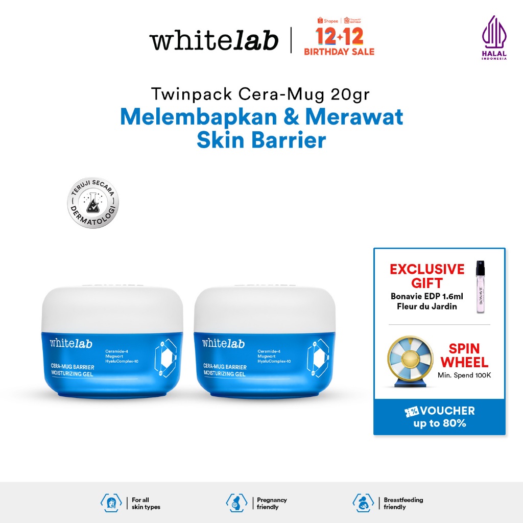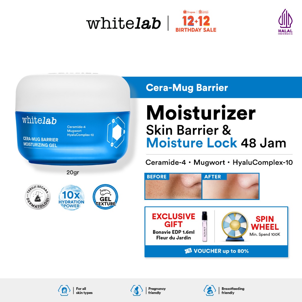 Whitelab Cera-Mug Moisturizer Gel untuk Skin Barrier - Pelembap Kulit Wajah Kering Siang Malam Cera-mug dengan Hyaluronic, Ceramide