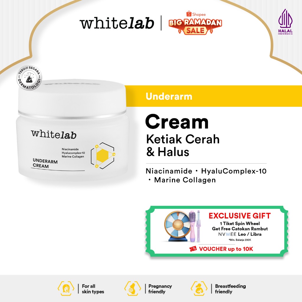 Whitelab Underarm Cream - Krim Pencerah Ketiak Selangkangan Bokong dan Lipatan Kulit Tubuh dengan Niacinamide, Hyaluronic & Collagen [BPOM]
