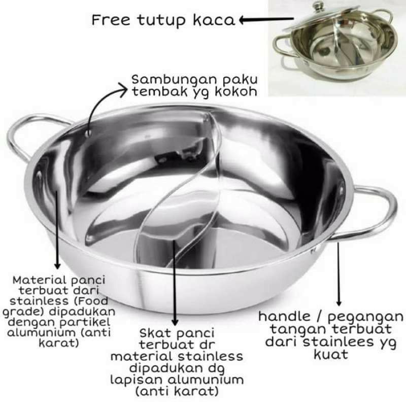 PANCI SHABU 2 SEKAT JUMBO 30CM TUTUP KACA / PANCI HOTPOT TEMPAT SHABU 2 SEKAT PANCI BUBUR 2 BAGIAN 5