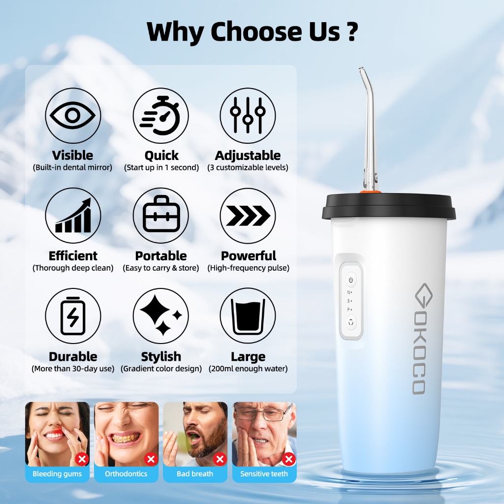 GOOJODOQ GD05 Smart Electric 1200mAh Oral Irrigator Water Flosser Dental 200ML Oral Care Dental Scaler Teeth Portable USB Rechargeableeaner Portable