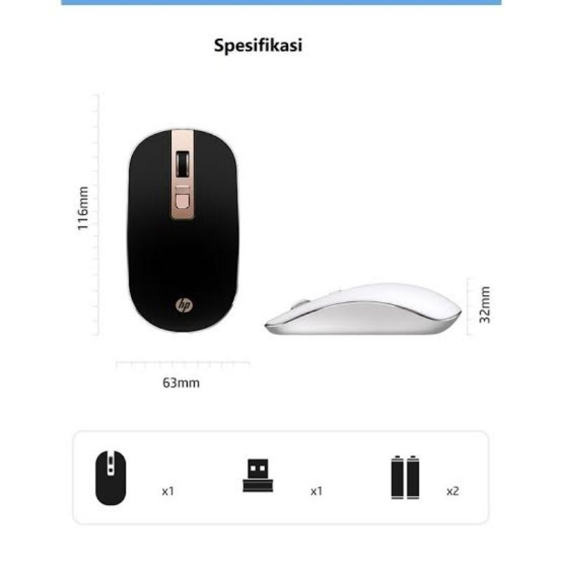 [ SKS ] COD MOUSE HP S4000 KLIK SILENT WIRELESS USB DONGLE 1600 DPI 2.4G / MOUSE HP WIRELESS MOUSE KLIK TIDAK ADA SUARA
