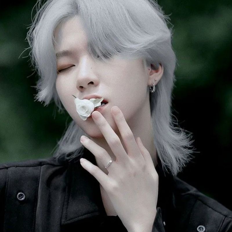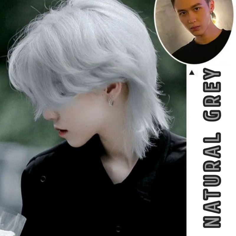 Wig Rambut Palsu Pria Rambut Panjang Warna Abu-Abu Wig Mullet Srigala Warna Grey Natural Wig Rambut Palsu Panjang Bagian Bawah Warna Abu