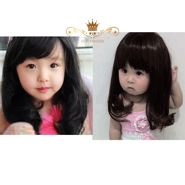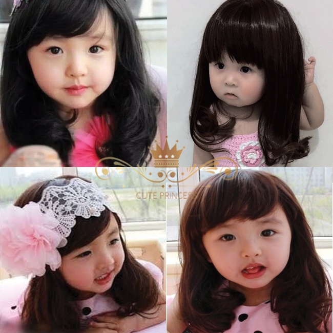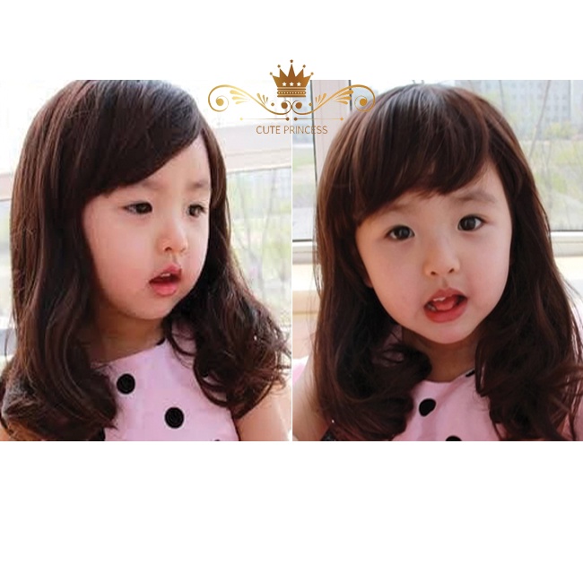 Wig Anak Cewe Model Bergelombang Panjang Sebahu Warna Hitam & Coklat Tua usia 6 bulan - 10 tahun