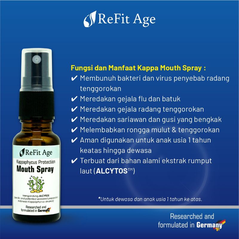 Refit Age KAPPA Mouth Spray Semproten Proteksi Mulut Bebas Virus Influenza & Bakteri 100% Aman 20ML