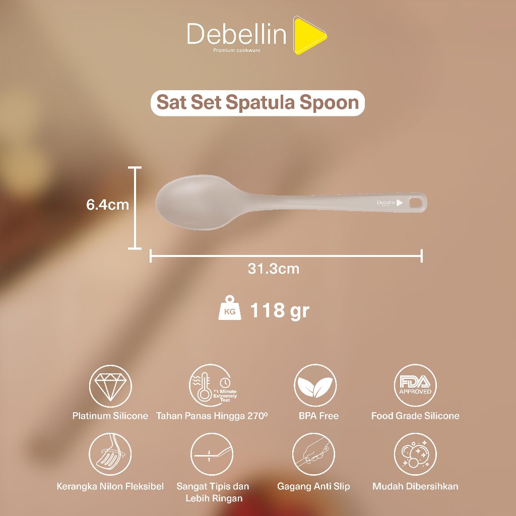 Debellin Sat Set Spatula Spoon - Spatula Full Silicone Tahan Panas Food Grade - Spatula Silikon Tahan Panas Food Grade