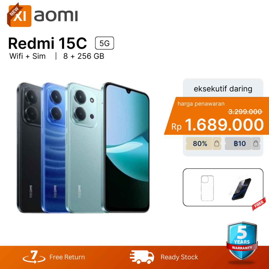 [Gratis Ongkir] Xiaomi Redmi 15C 5G (8GB/256GB) | Baterai besar 6000mAh dengan pengisisan daya 33W | Desain ramping dan elegan | Layar Imersif 6.9" 120Hz | 50 MP kamera ganda AI