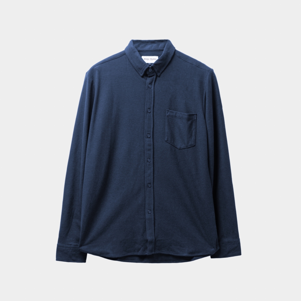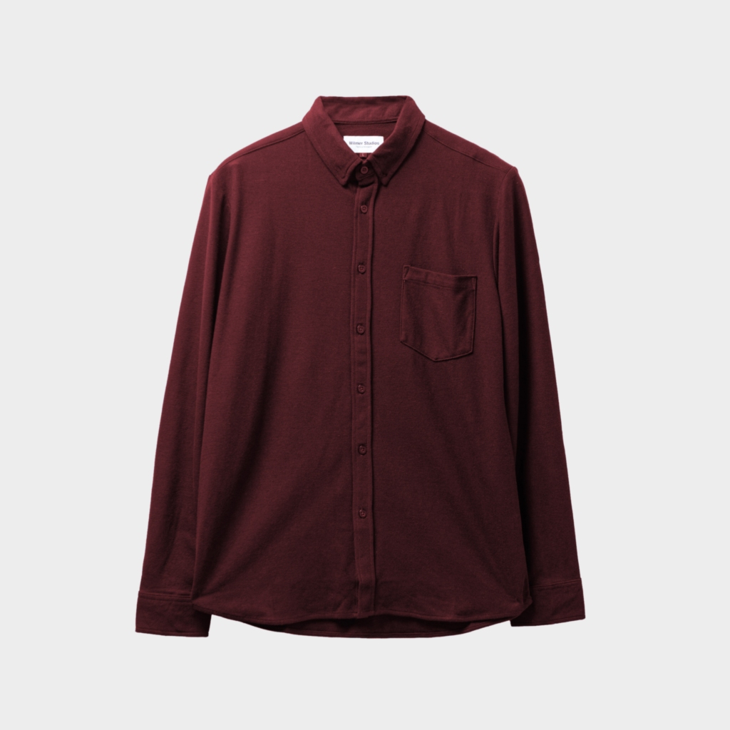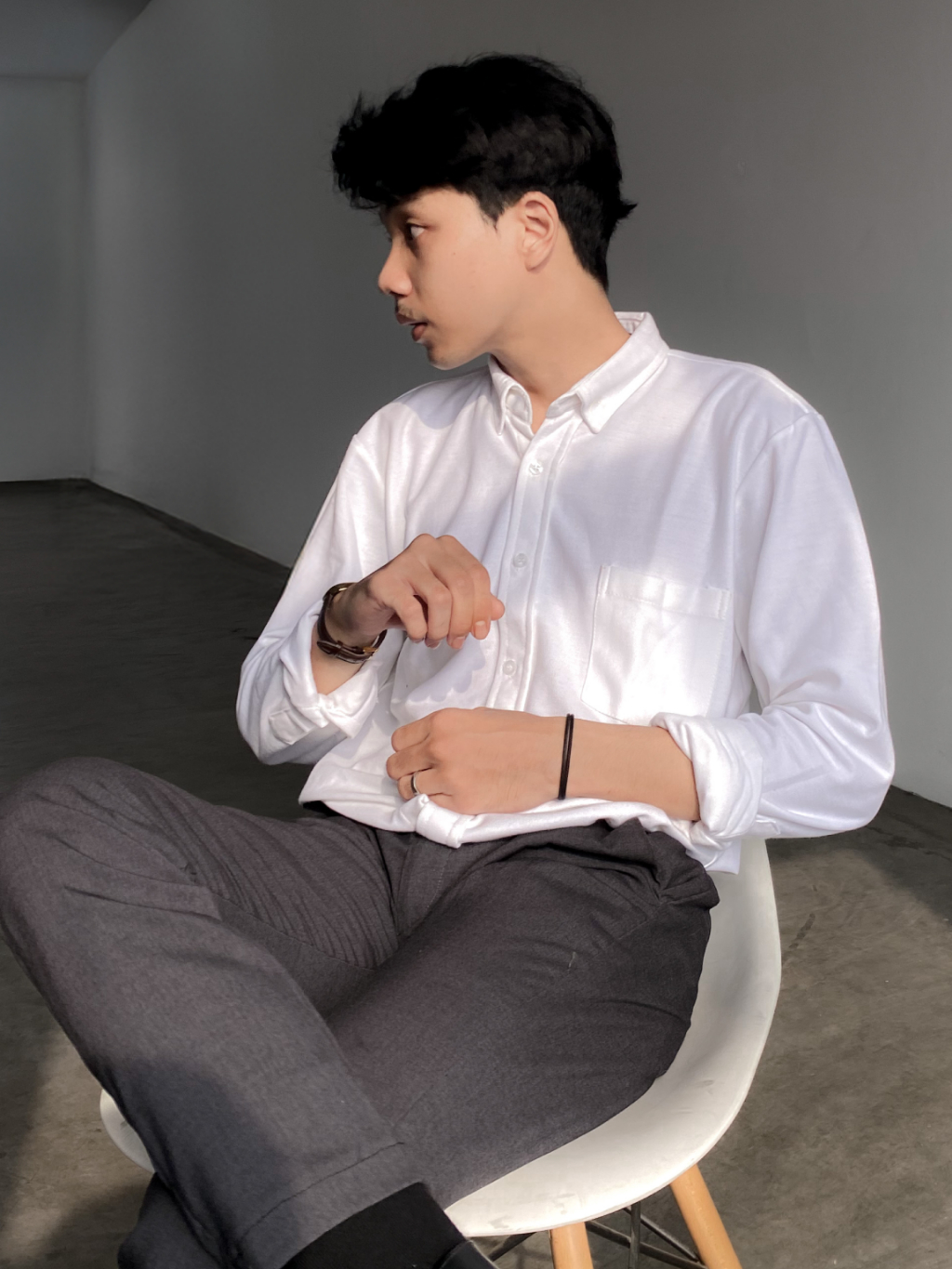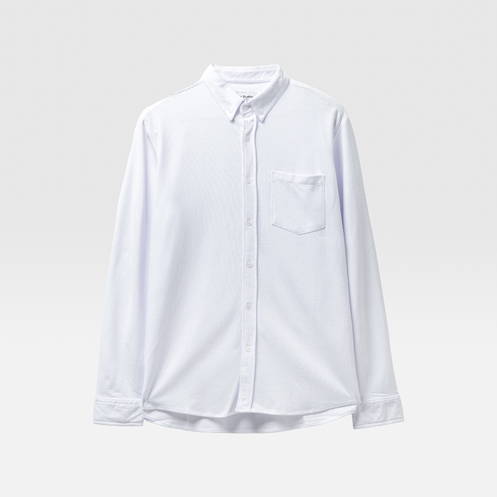Wilmerstudios Kemeja Pria Pique Lengan Panjang Putih
