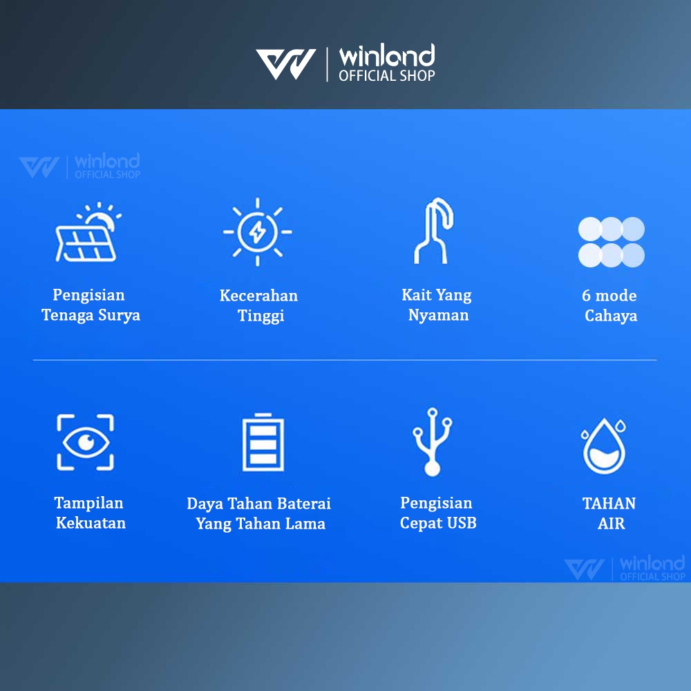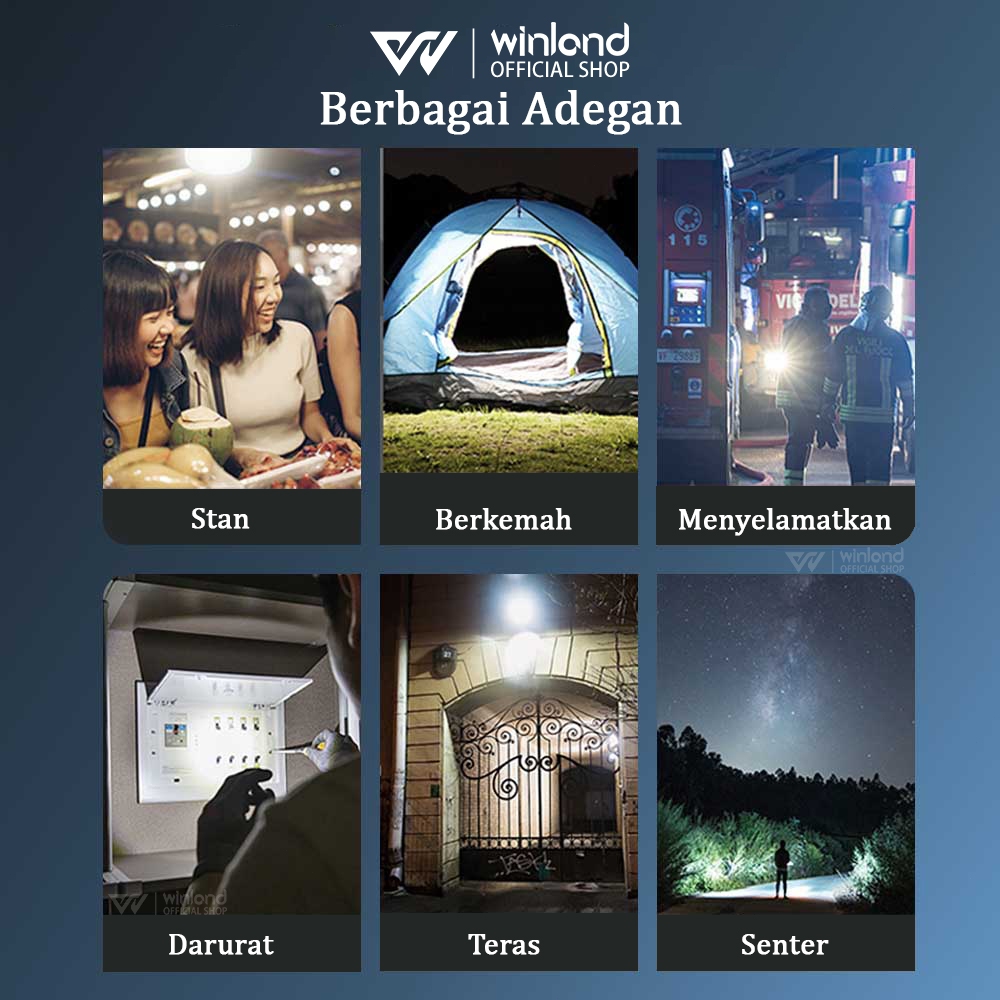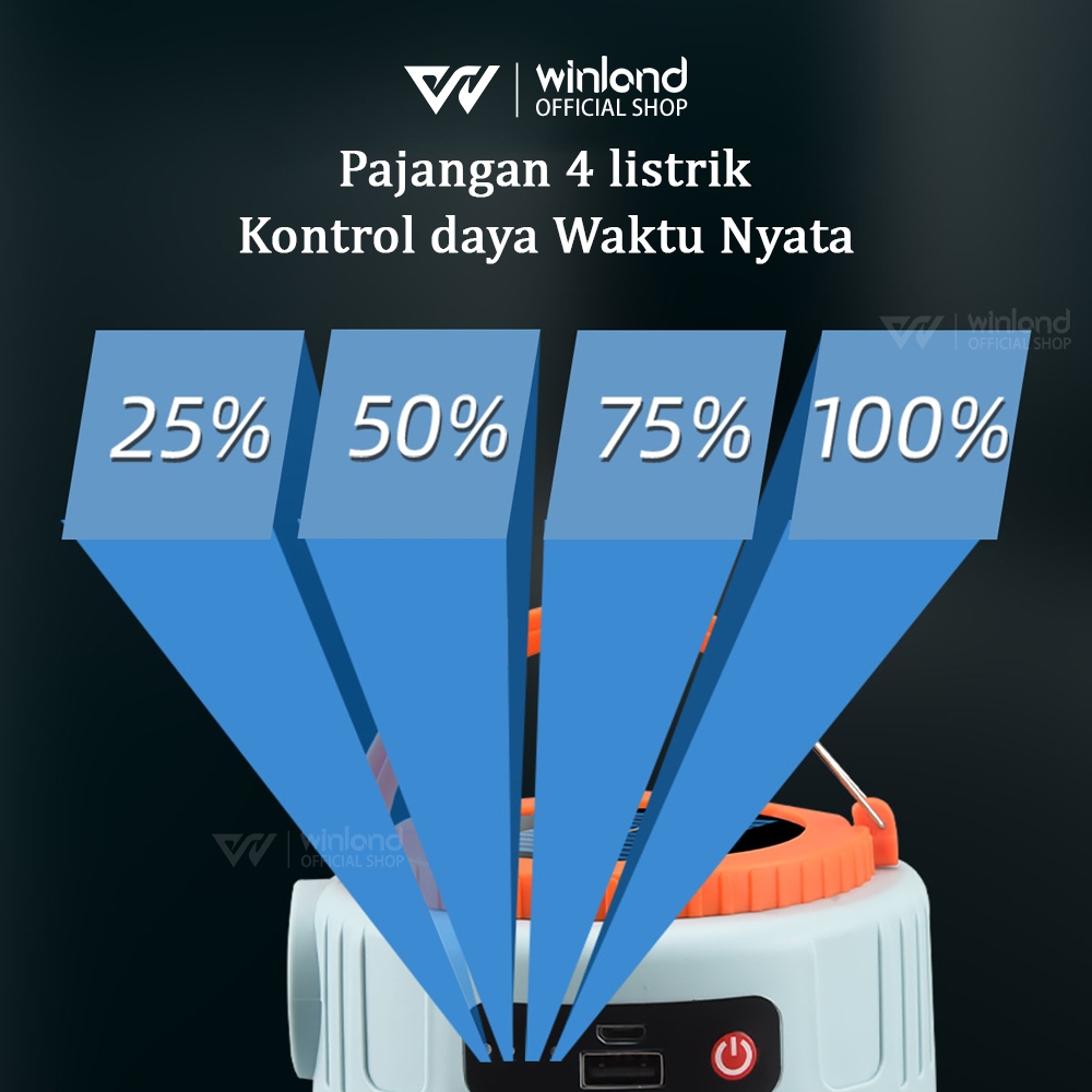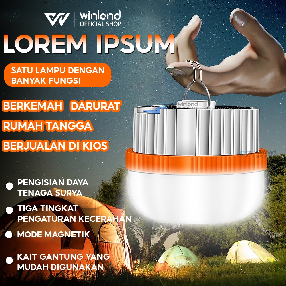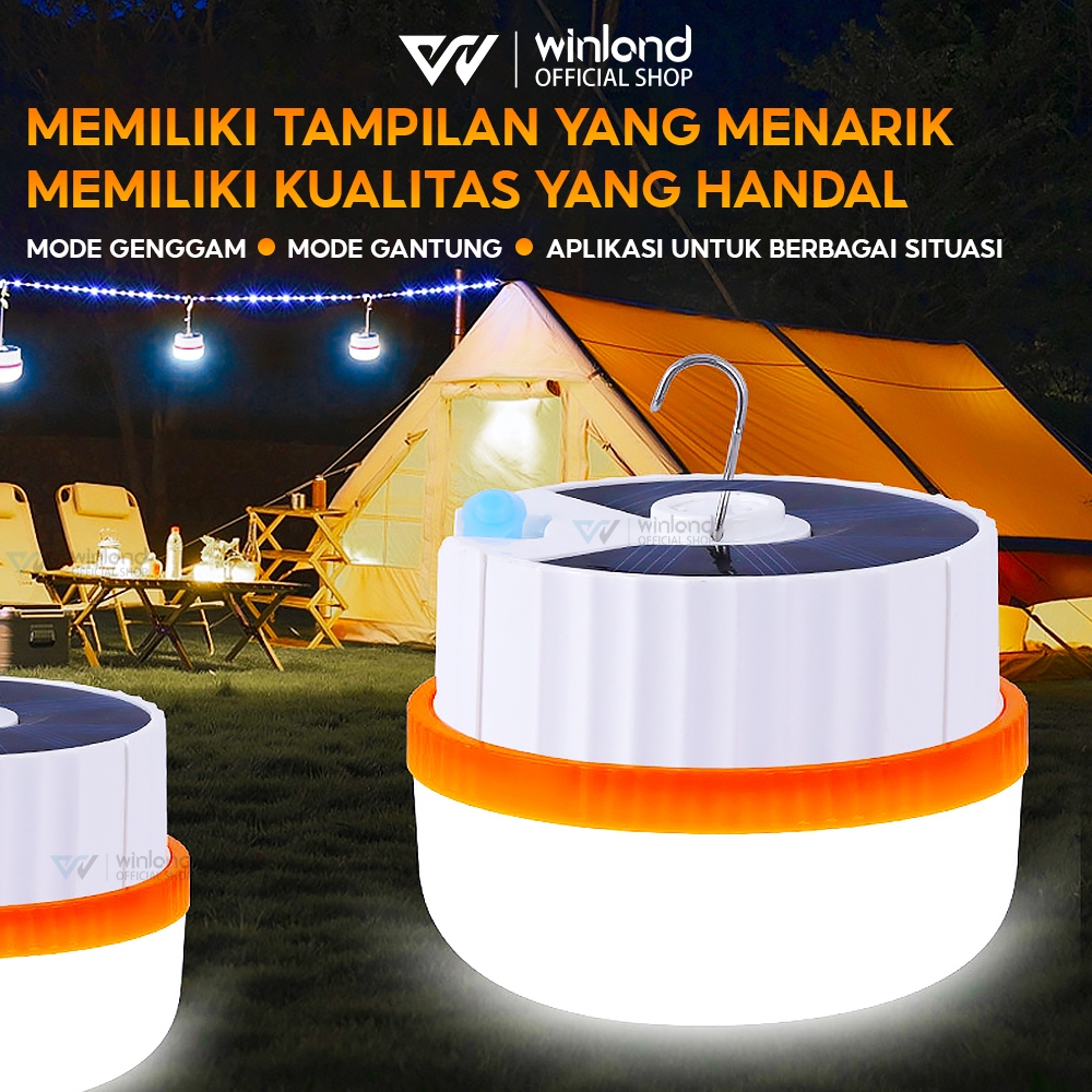 Winland Lampu Emergency Solar Tahan Lama LED Gantung Portable Tenaga Surya Bohlam Cas USB Baterai Lithium Nyala 6 Jam Bohlam Multifungsi Lampu LED