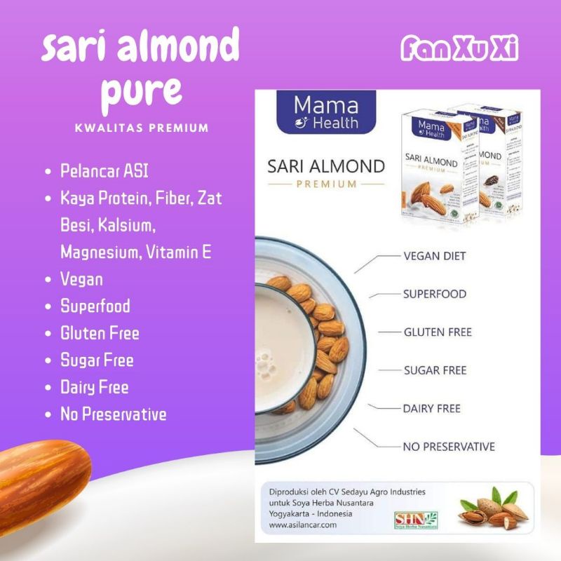 Mama Health SARI ALMOND PREMIUM Pure 100% + VEGAN + Sugar Free + Gluten Free + Dairy Free + Bubuk Almond Murni