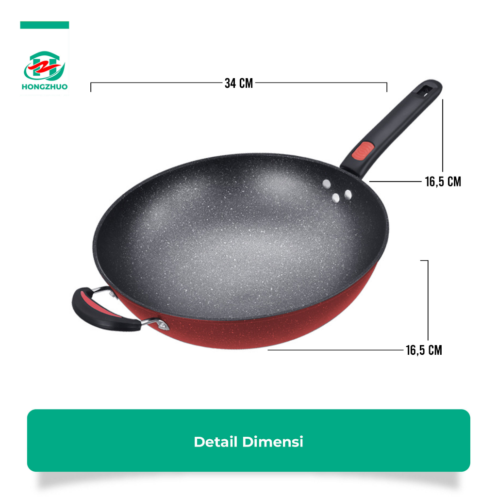 Hongzhuo Wajan Penggorengan Anti Lengket Batu Medis Ukuran 32 CM Diamond Wok Pan TKIS