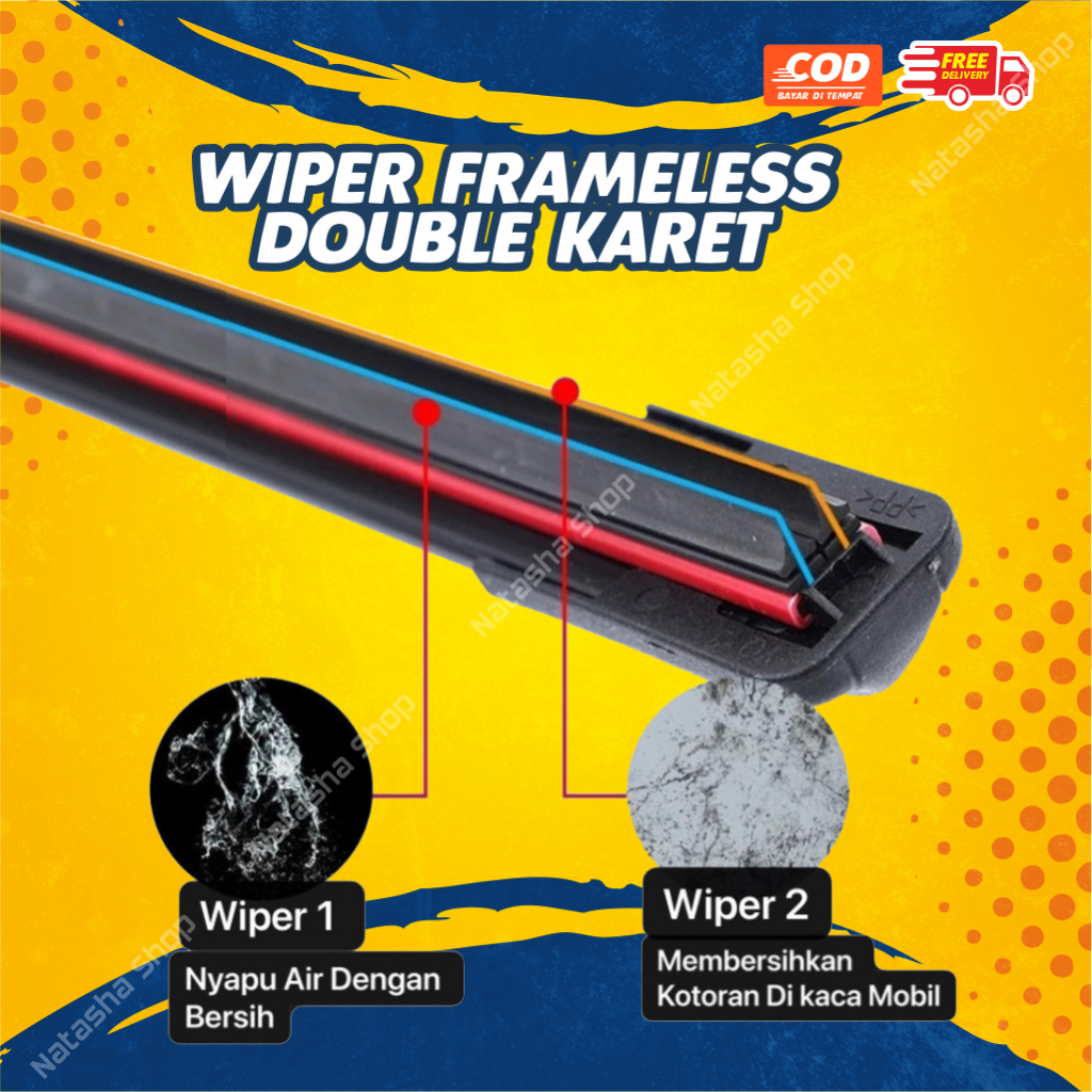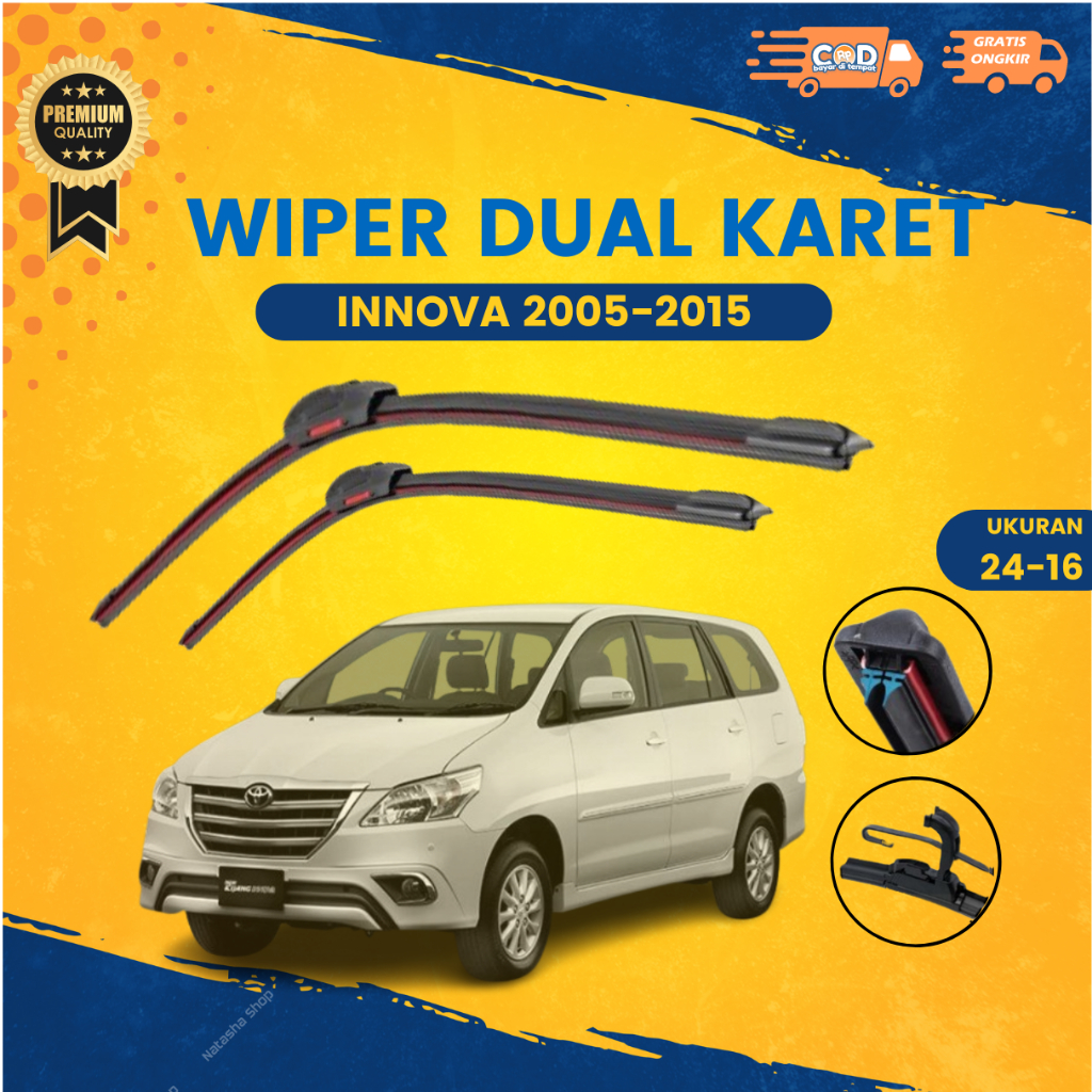 Wiper Dual Karet Double Blade INNOVA 2005-2015 Ukuran 24 - 16 inci | Wiper Mobil Frameless Sepasang Kanan Kiri