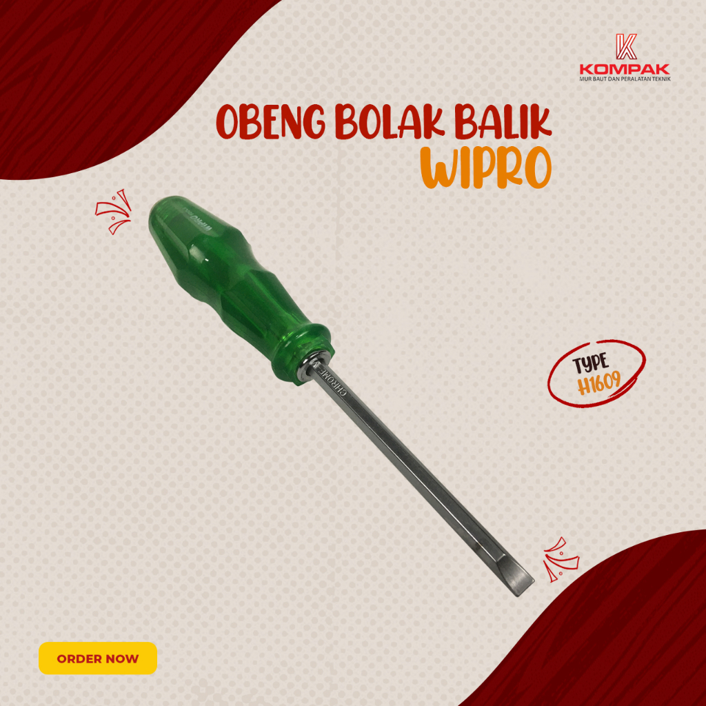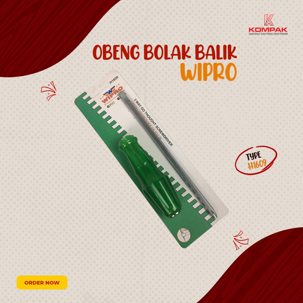Wipro H1609 Ukuran Obeng Min (-) PH2 Obeng Plus (+) 6 mm Obeng Tembus