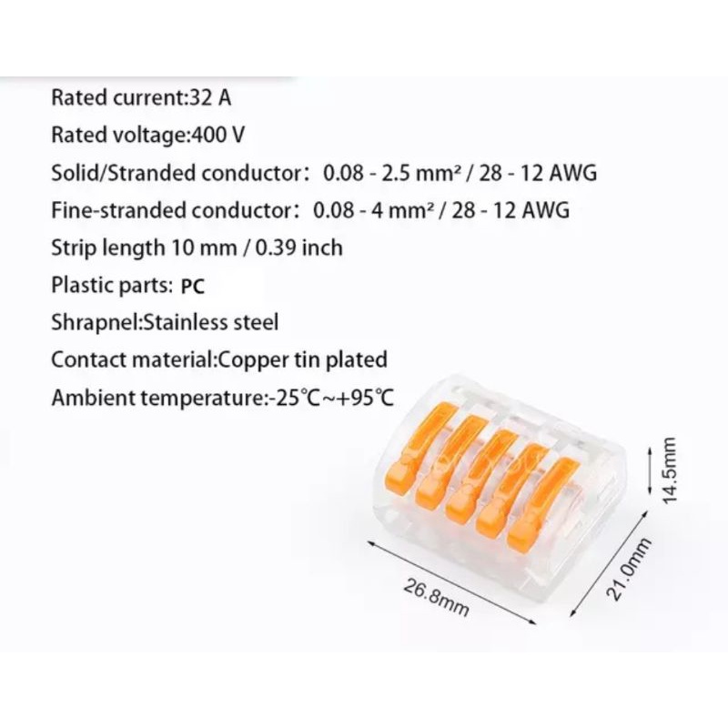 Wire Connector Terminal Kabel Block Tuas (S-22/33/5/T) Sambungan Cepat 11 Pcs