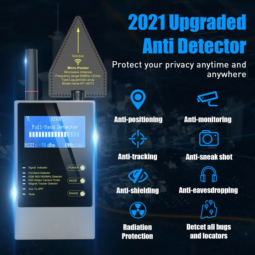 Wireless Audio Bug GPS Camera Detector Finder Bug Detector RF Signal Detector Anti Tracking Strong Magnetic Detector
