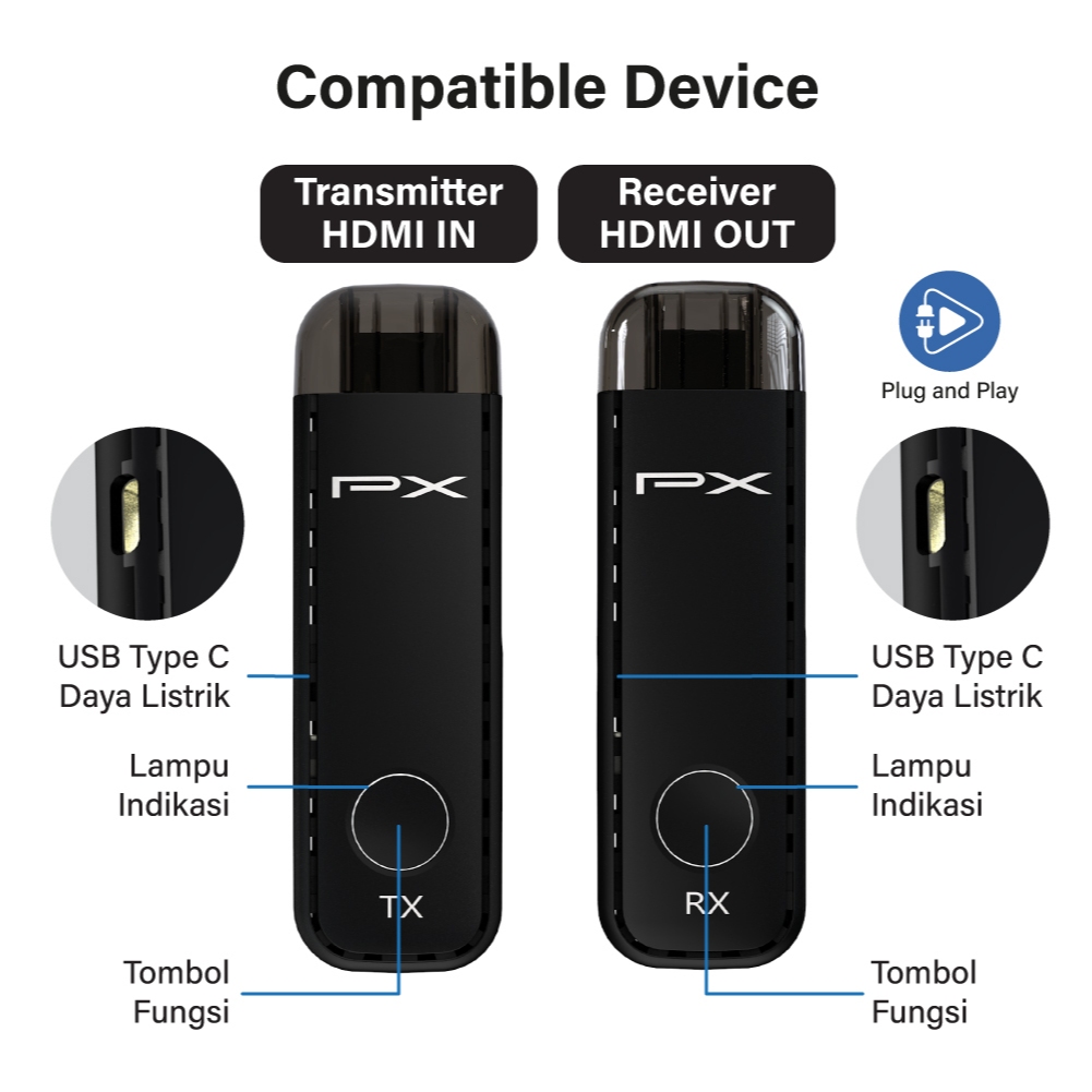 Wireless Audio Video Transmitter Receiver Extender PX WTR-200S
