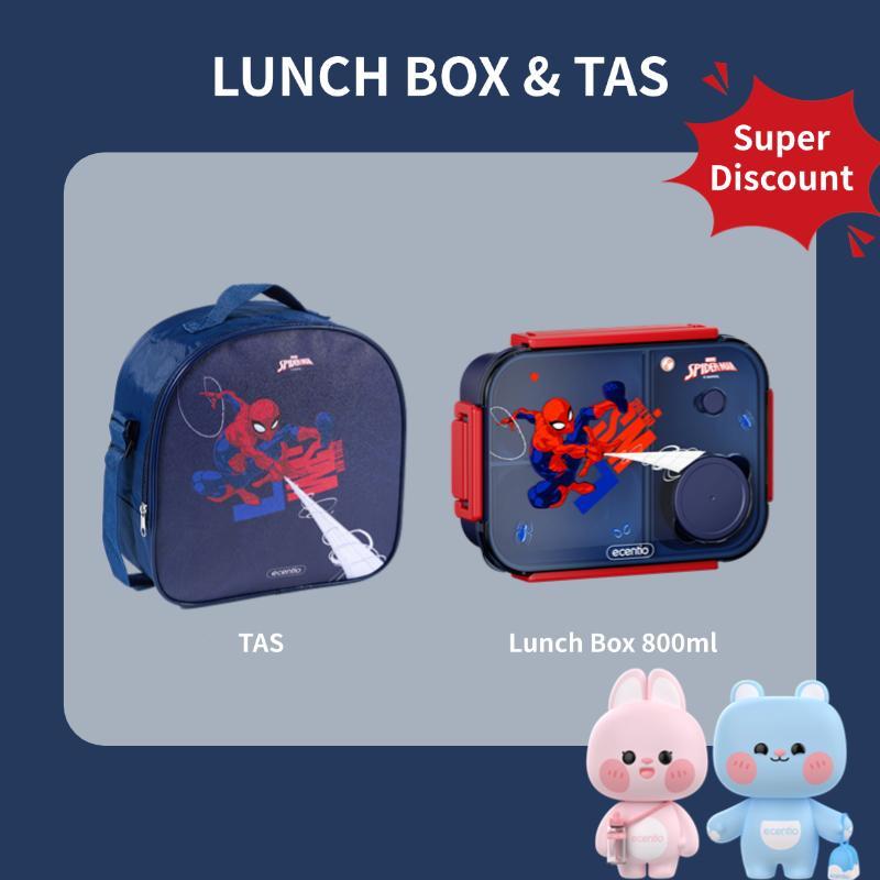 [ecentio spider man set]ecentio Kotak Makan Set anti tumpah lunch box anak 800ml free sendok botol minum lucu BPA Free Tas bekal