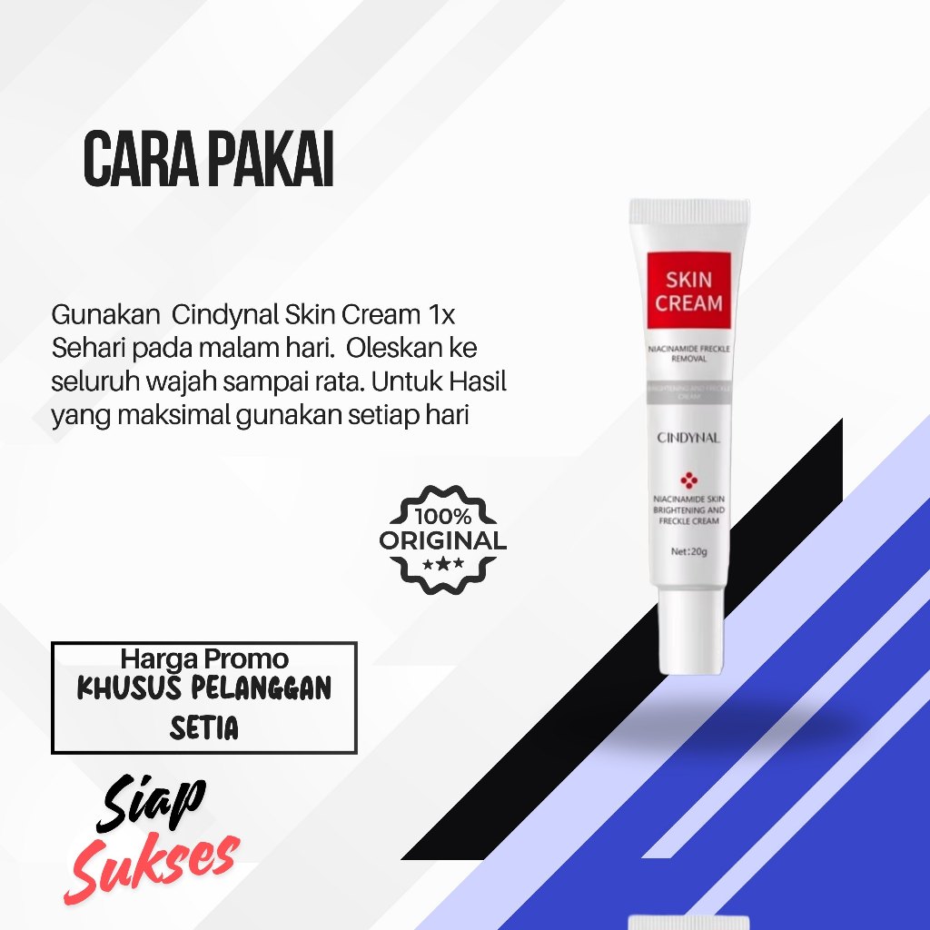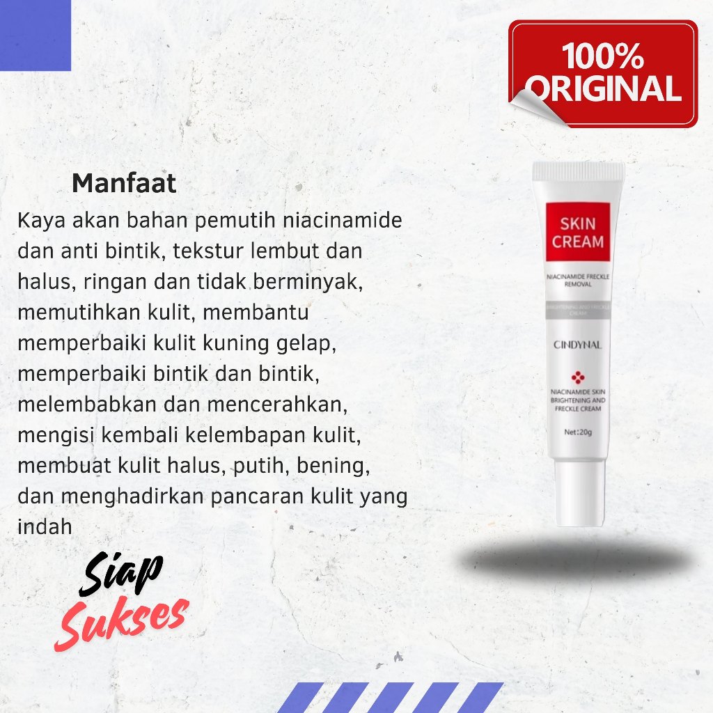 Cindynal Skin Cream Spot Whitening Cream penghilang Flek dan Noda Hitam Bebas Penuaan Dini Glowing Cerah Alami