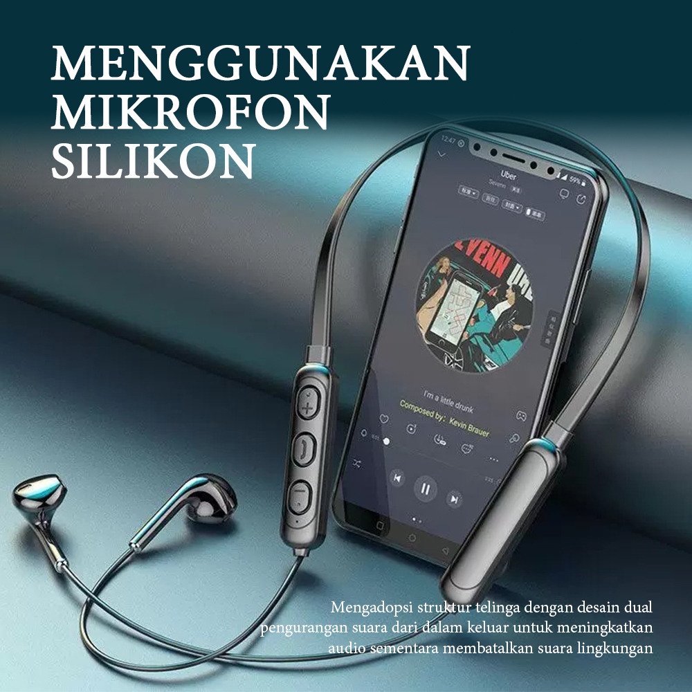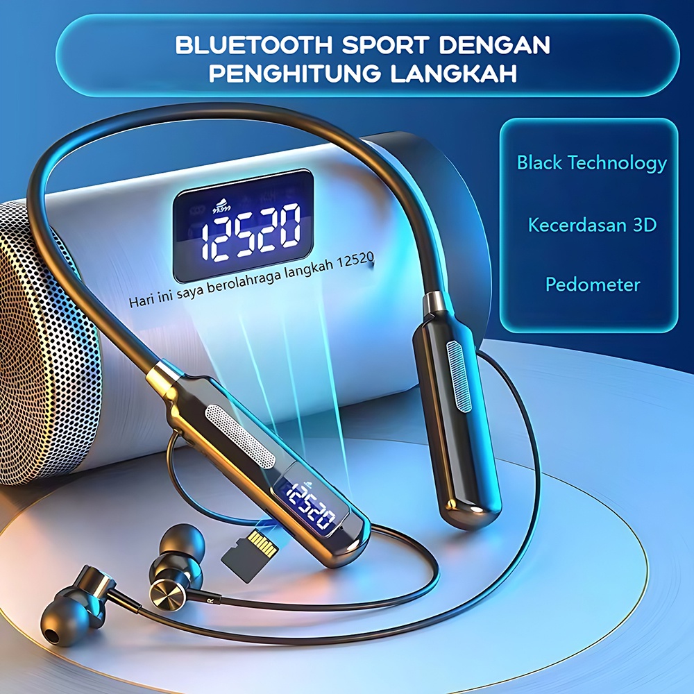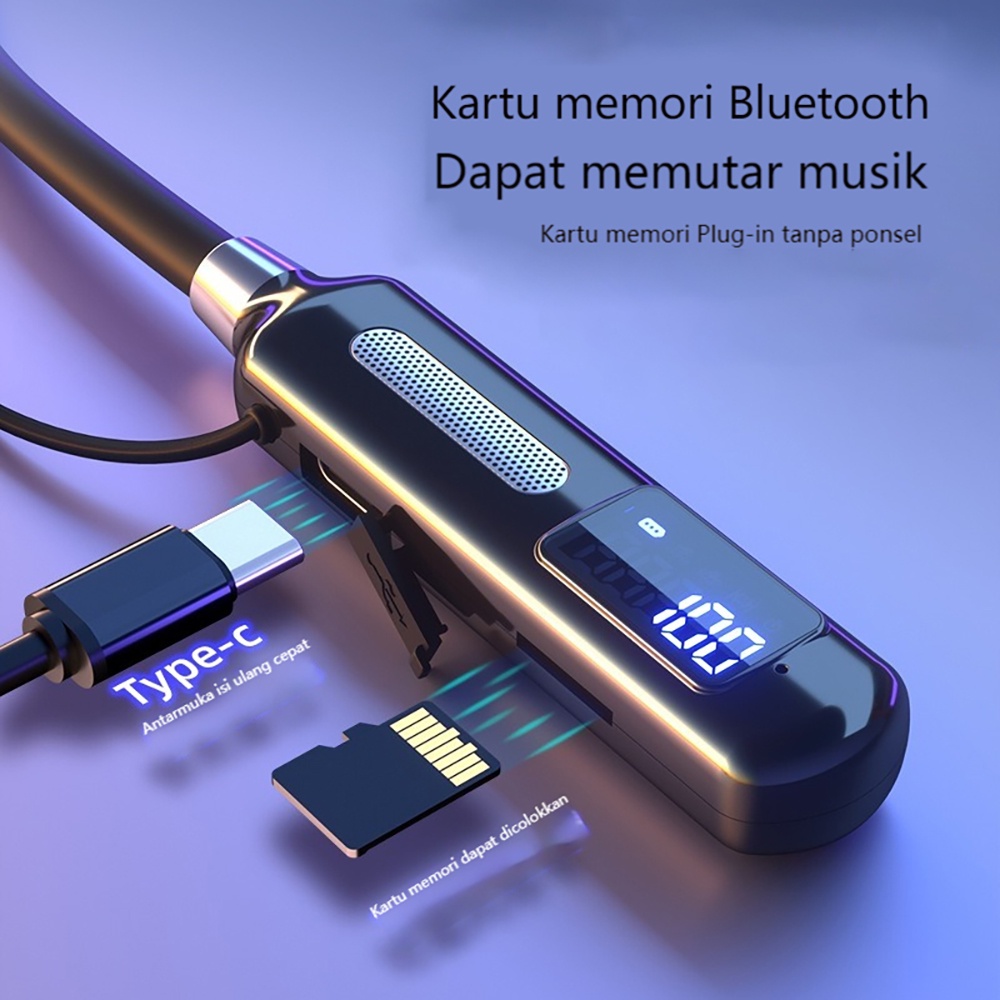 Wireless Earphone Bluetooth Earbud Gaming Musik In-Ear Headphone Nirkabel Langkah Menghitung Headset Leher Menggantung Earbud Magnetik Sport Tahan Air Earphone Layar LED Earbud Mendukung Kartu TF
