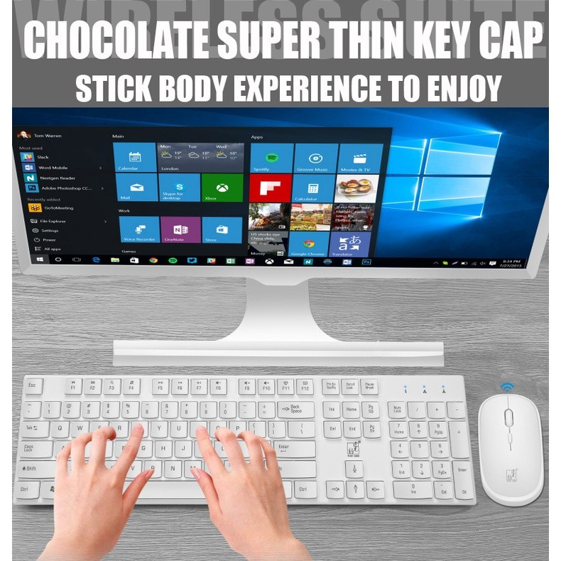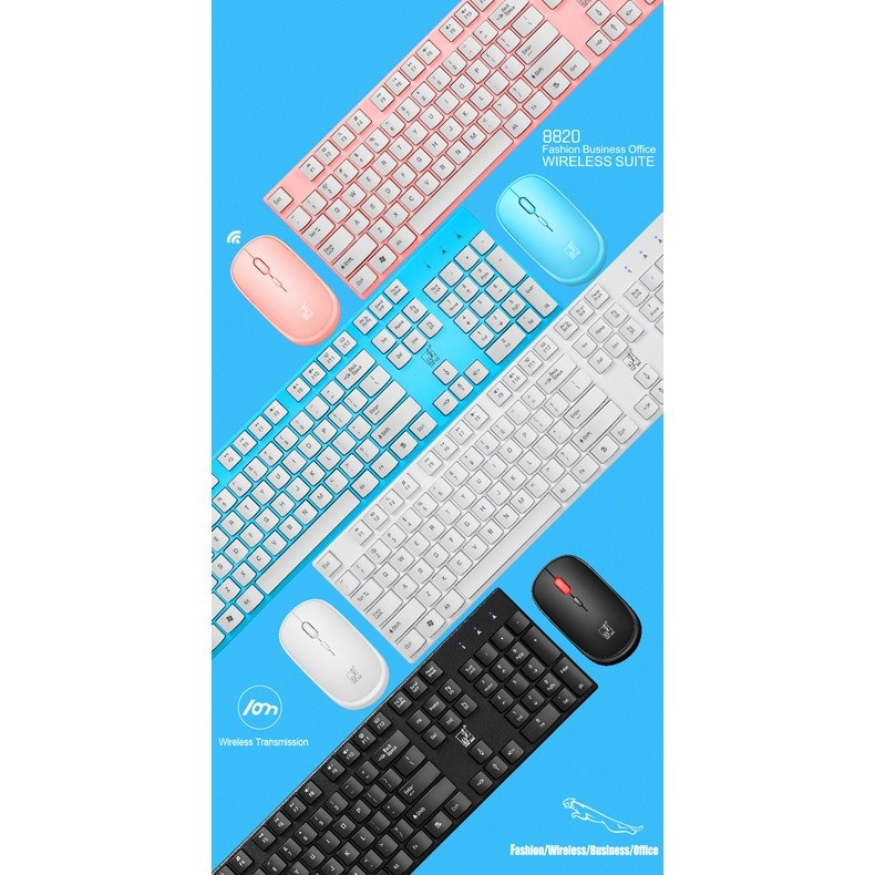 Wireless Keyboard Mouse Set For Notebook Laptop Desktop PC - Biru Muda merah muda