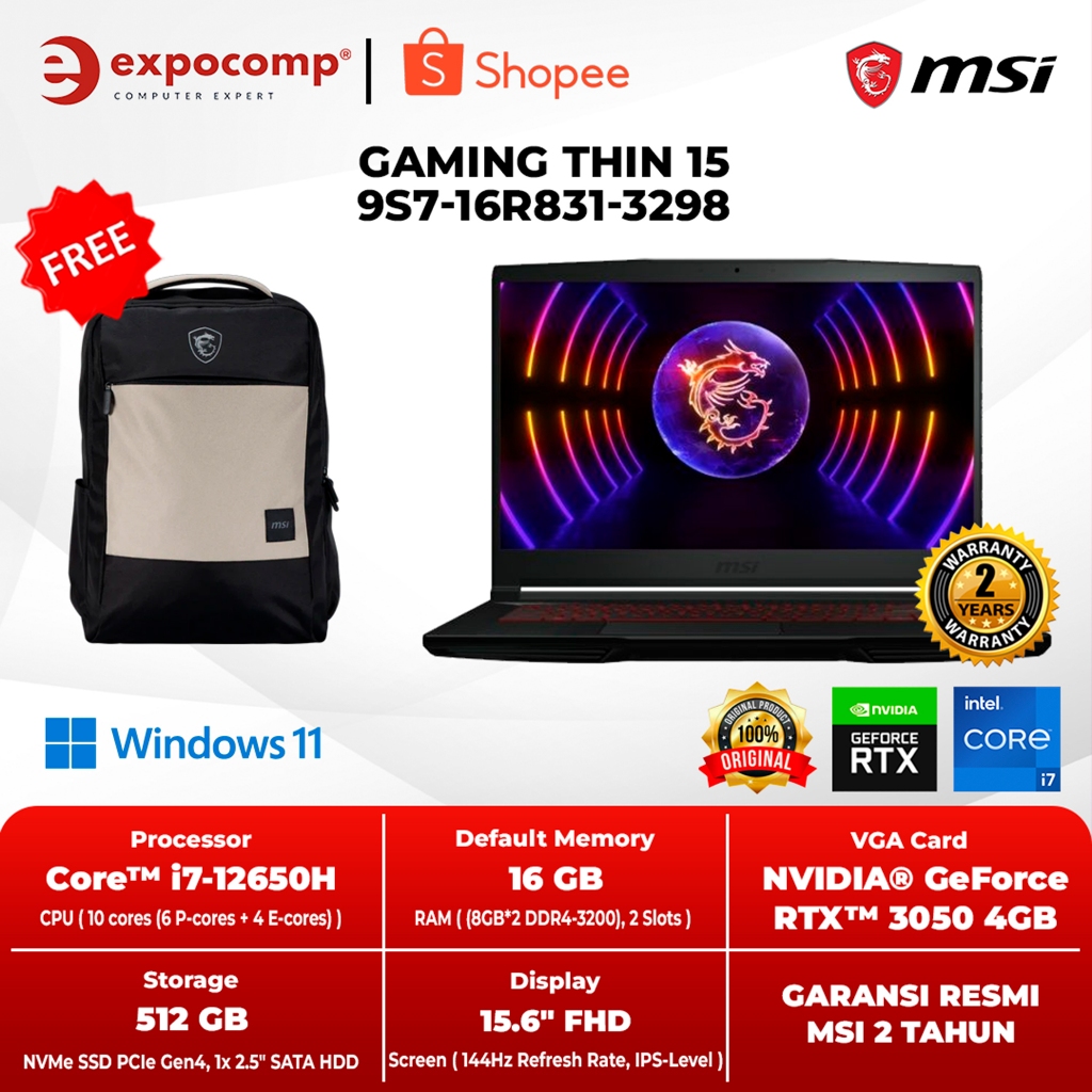 MSI GAMING THIN 15 9S7-16R831-3298 GRAY INTEL CORE i7-12650H 16GB 512GB RTX 3050 4GB GDDR6 WIN 11 HOME