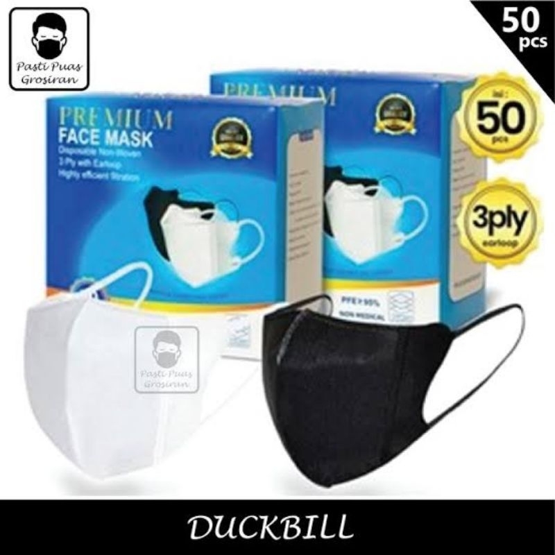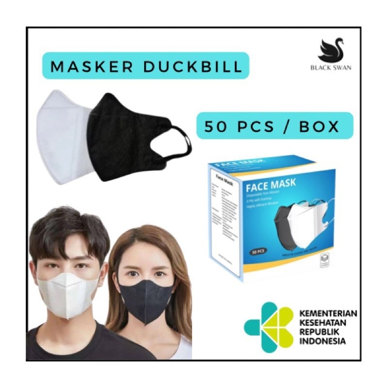 {COD} Masker Duckbill Facemask Premium 50 Pcs 3Ply Hitam Putih KEMENKES RI