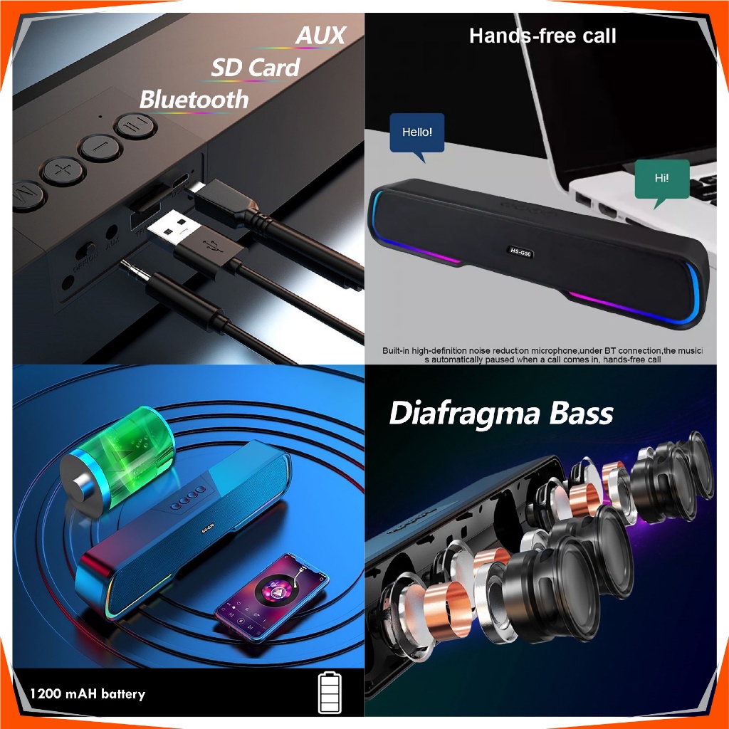 Wireless Speaker Bluetooth Soundbar RGB LED HS-G50