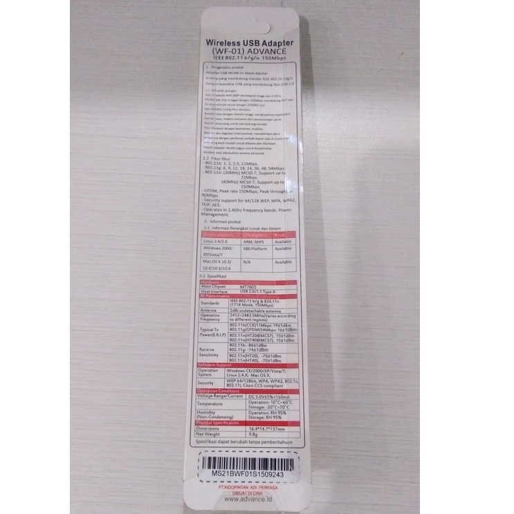 Wireless USB Adapter Advance WF-01 Komputer PC Laptop Set Top Box 150Mbps USB Dongle Wifi Wireless