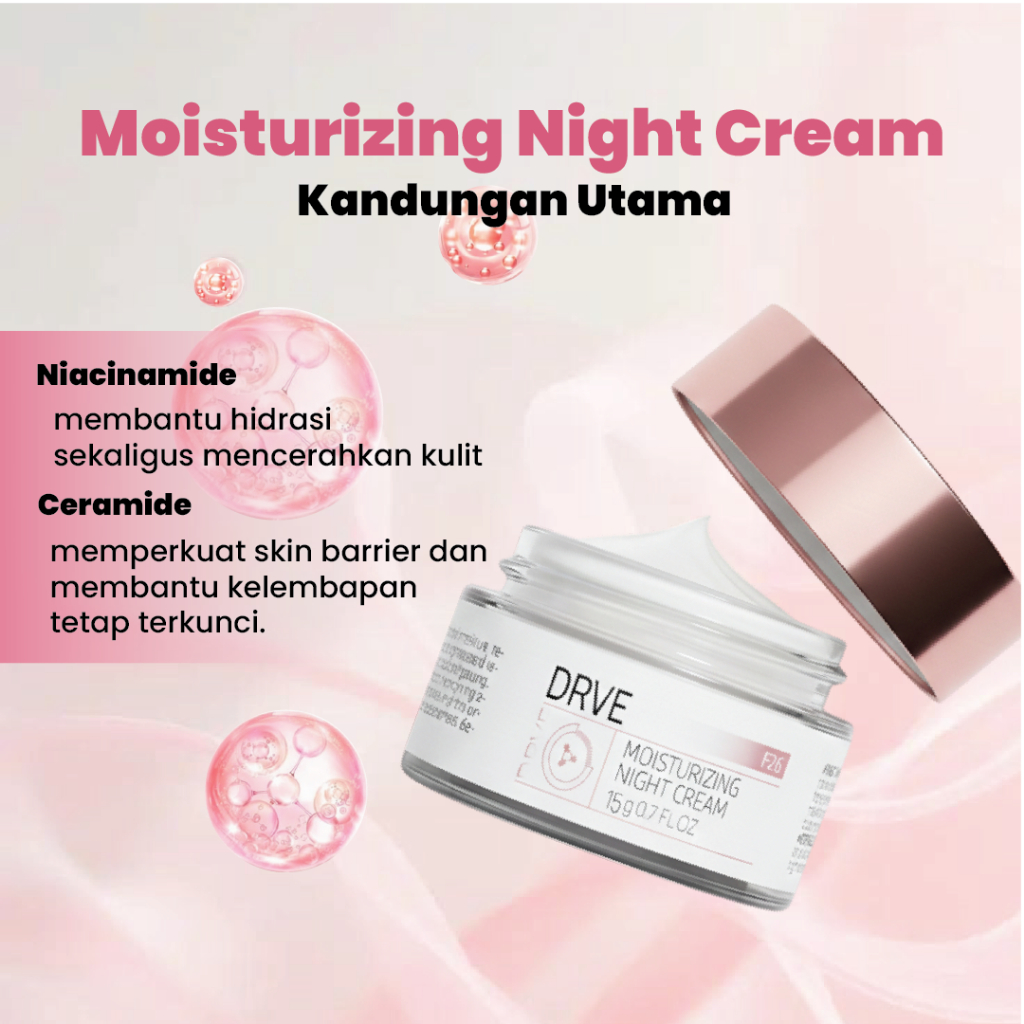 [TOP SALE] DRVE Moisturizer Night Cream 15g - Melembapkan & Memperbaiki Skin Barrier Semalaman|Solusi Wajah Glowing dan Kenyal Saat Bangun Tidur|moisturizer|moisturizer cream|moisturizer pria|moisturizer murah|moisturizer cowok|moisturizer pink