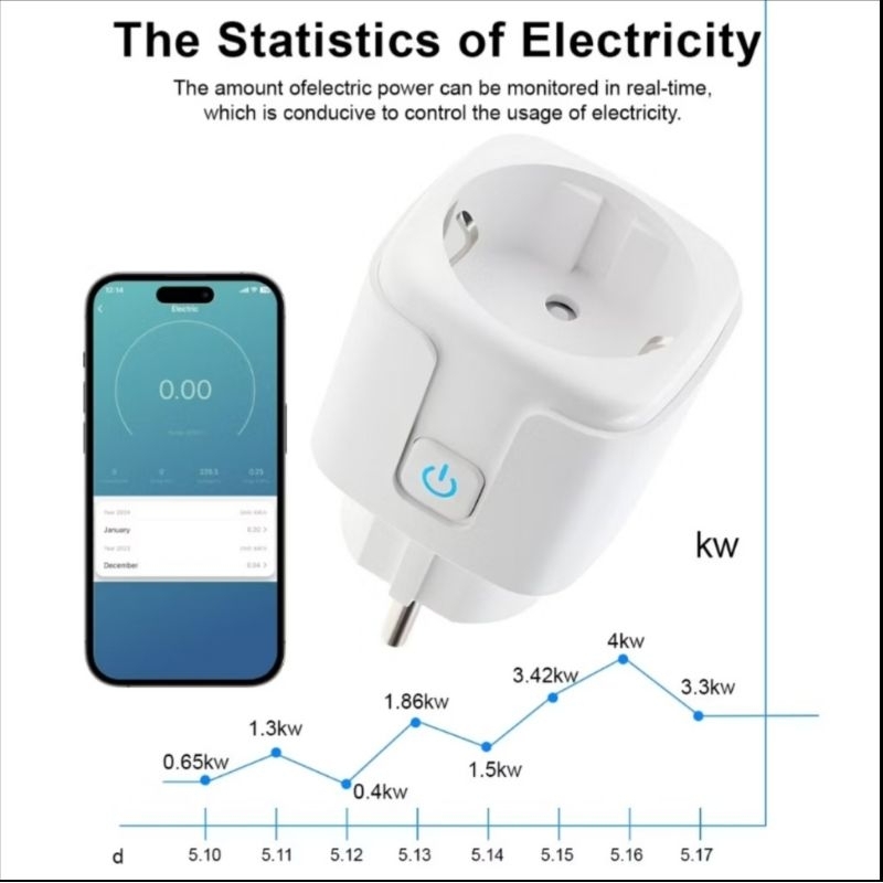 Wireless WIFI Smart Plug Socket 16A With Colokan Energy Monitoring Statistic Smart Home Colokan Stop Kontak Timer Colokan Pintar Wireless Smart WIFI Remote Control Single Socket - Home smart plug