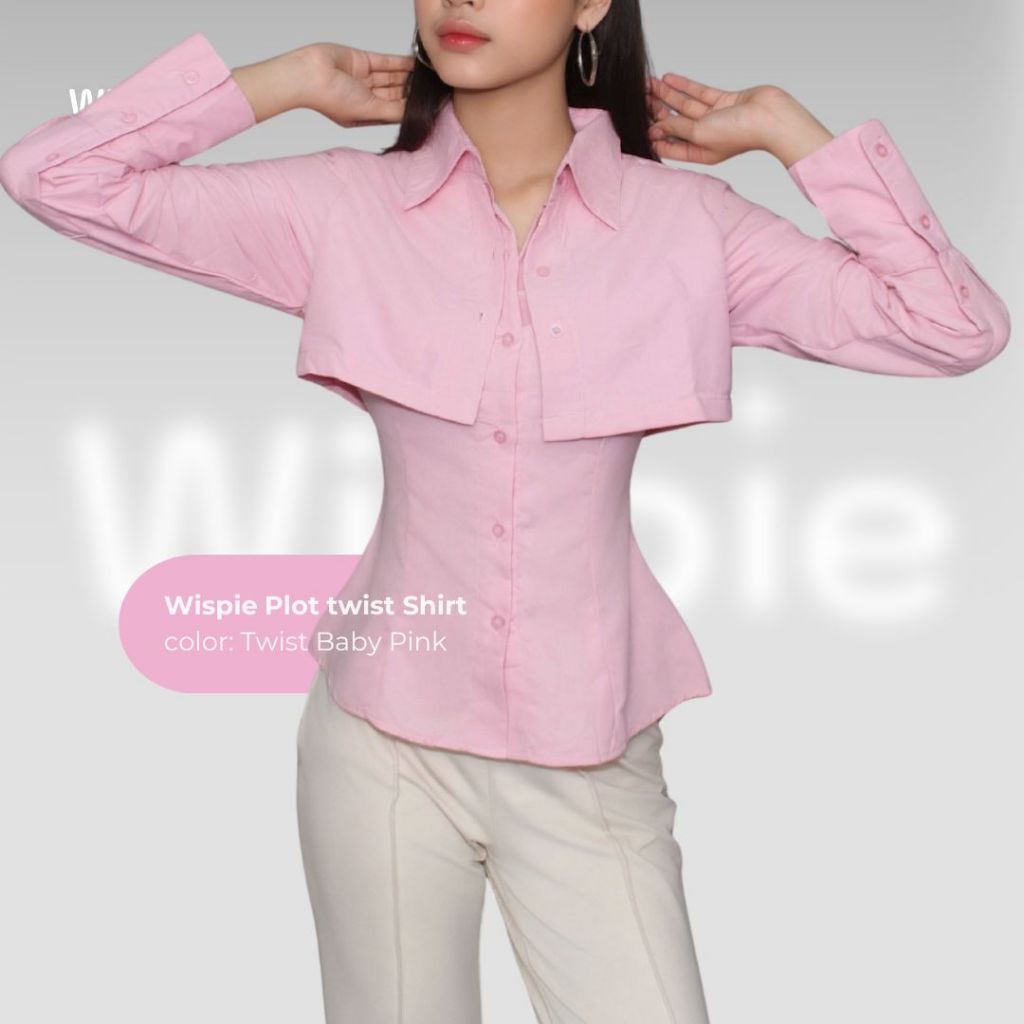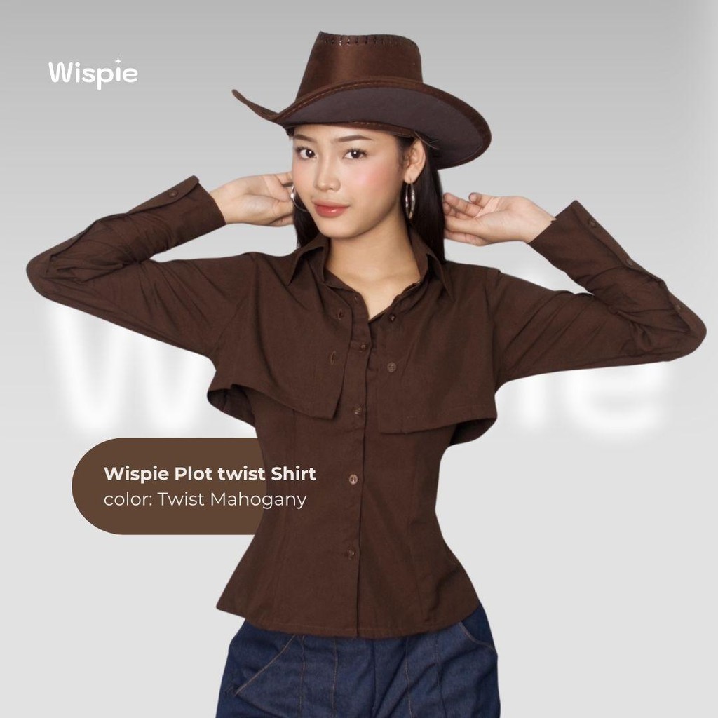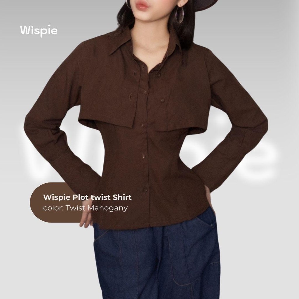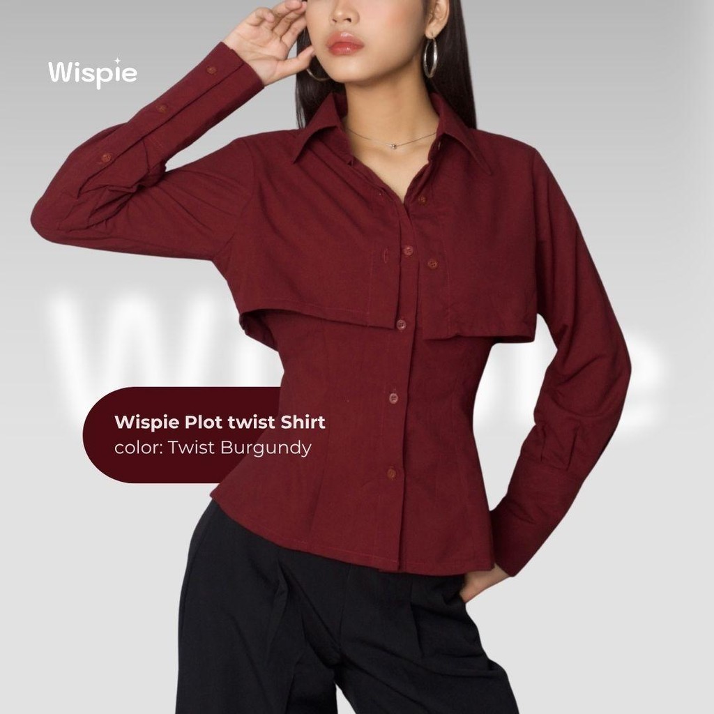 Wispie Plot Twist Shirt | Kemeja Lengan Panjang Wanita Maroon Coklat Fitted Slim Blouse