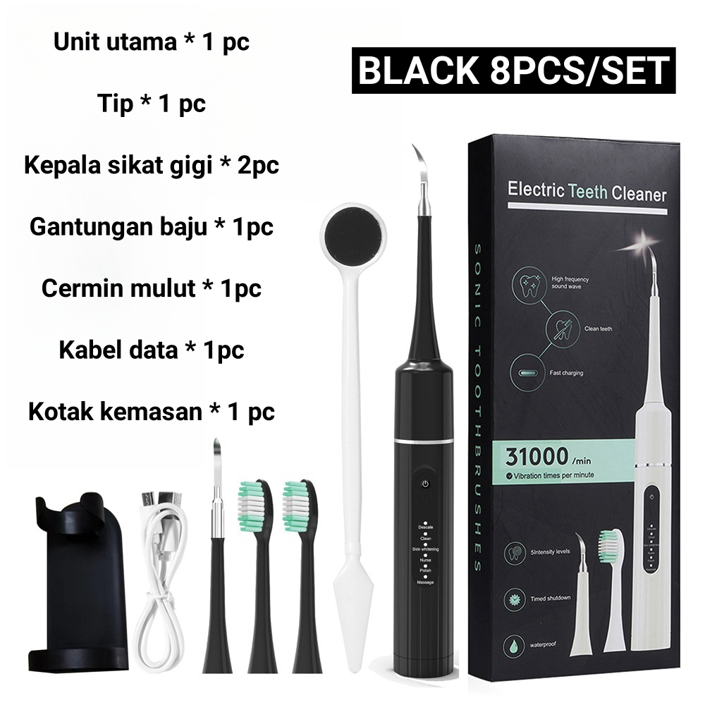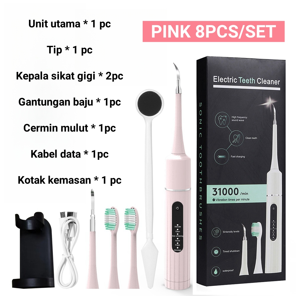 Alat Perawatan Gigi 8pcs/set Electric Teeth Cleaner Smart Ultrasonic Scaling Pembersih Karang Plak dan Karang Gigi