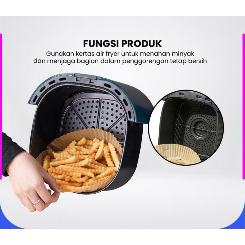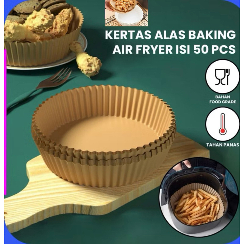 50 Pcs Kertas Alas Air Fryer / kertas fryer anti lengket /Anti Lengket Tahan Minyak baking paper / Alas Fryer Silikon / Tatakan Kue / Tempat Kue