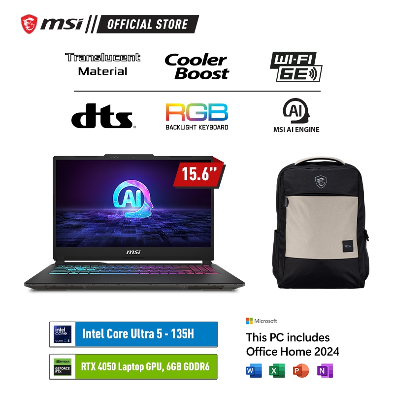 MSI Cyborg 15 AI A1VEK Intel Ultra 5 135H 512GB SSD 16GB RTX 4050 6GB 15.6" FHD Win11 Home + OHS2024