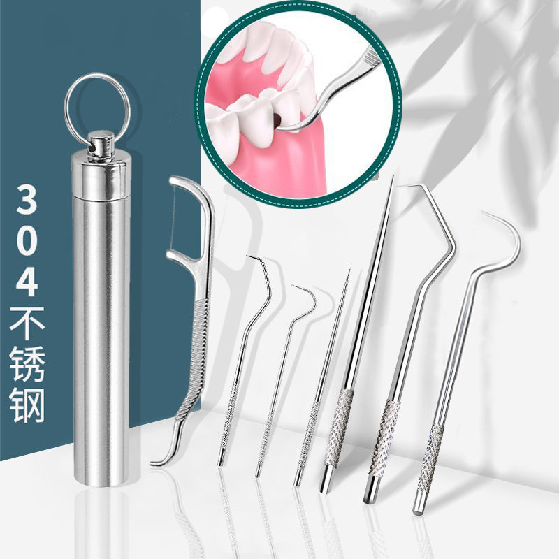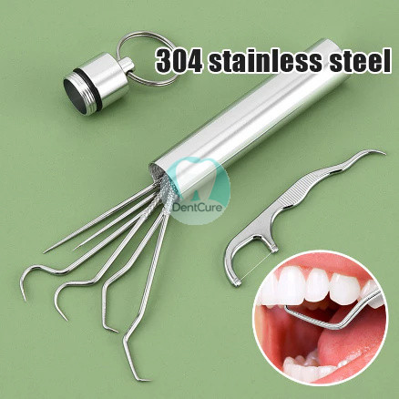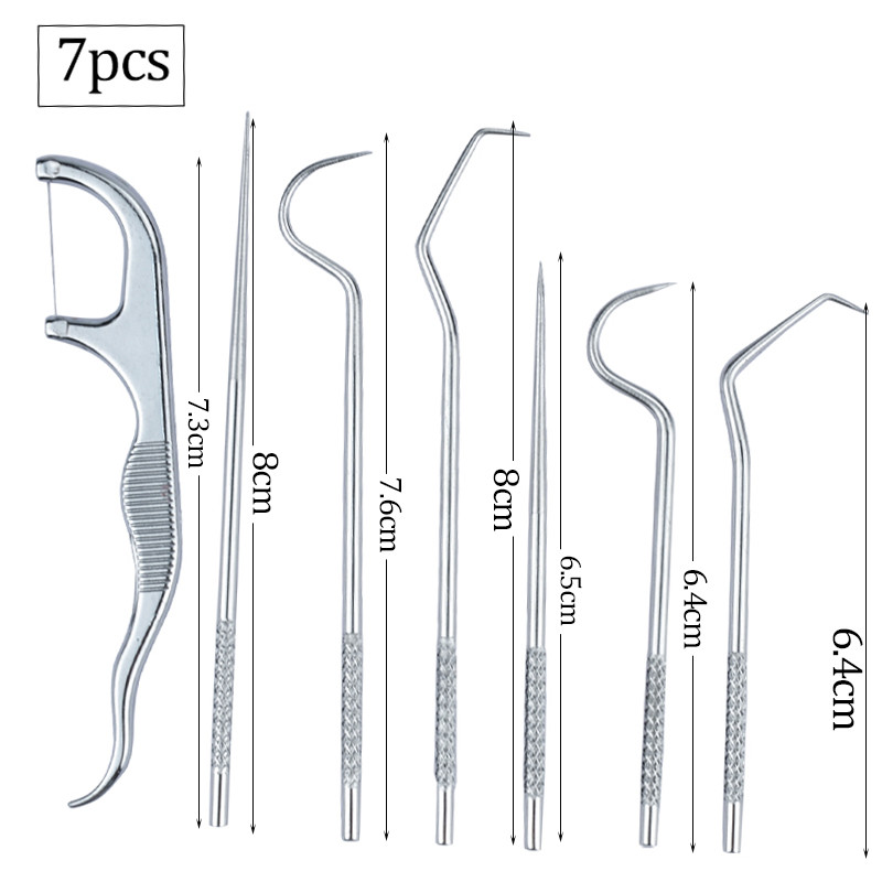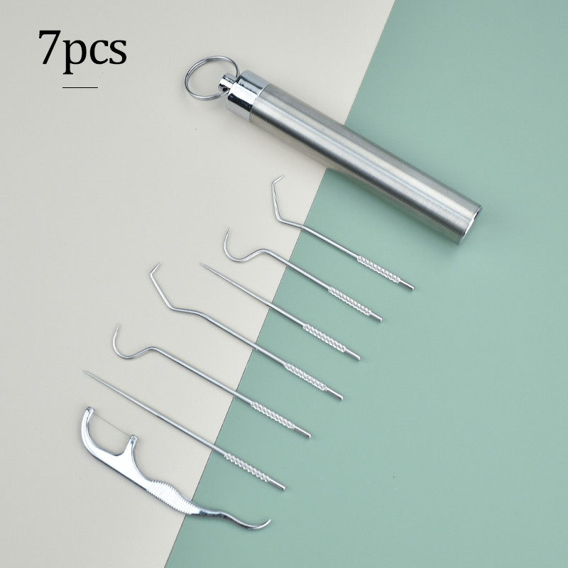 304 Stainless Steel Oral Cleaning Tools Toothpick 7Pcs Set Dental Floss Tooth Tartar Removal Tool / Alat Pembersih Gigi