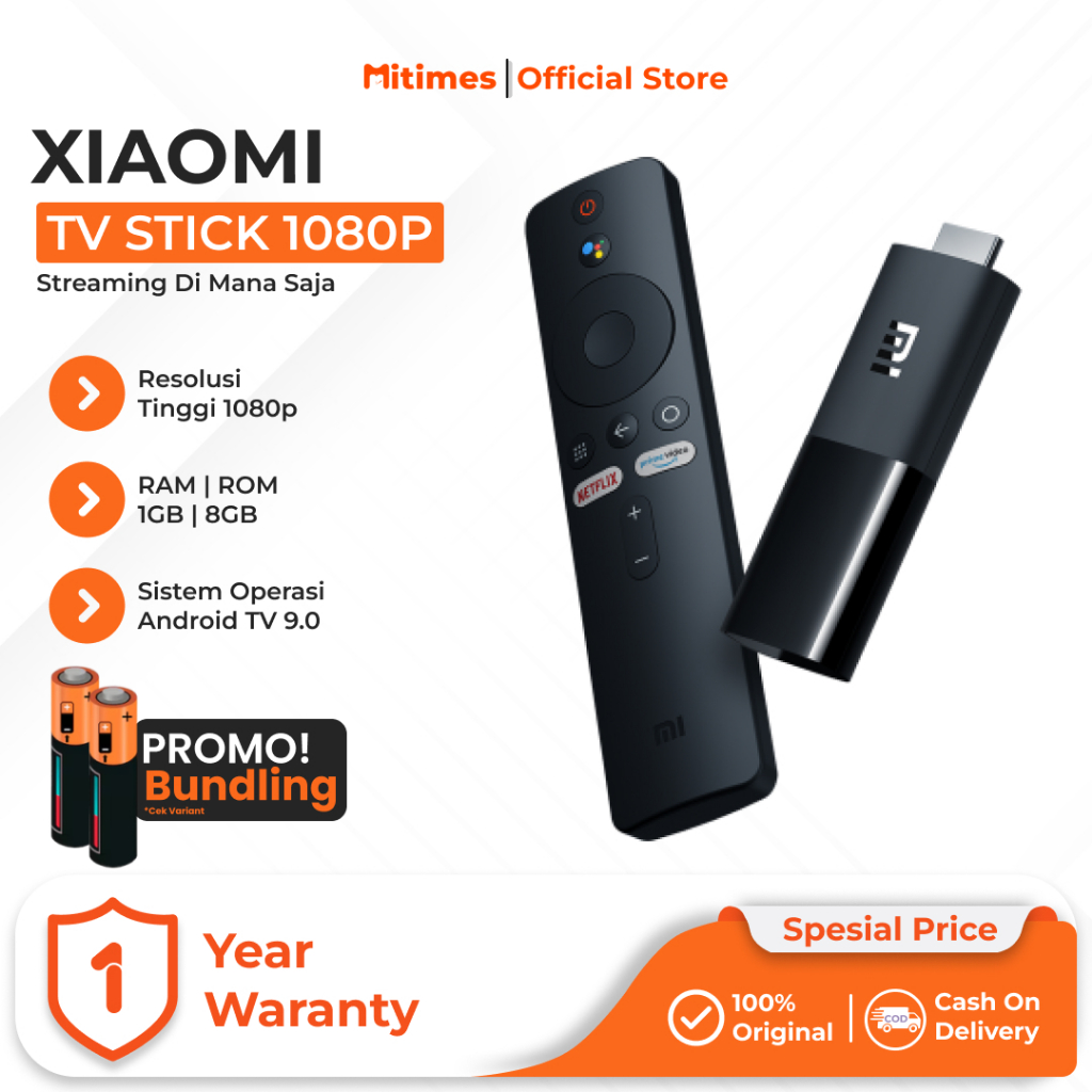 Xiaomi TV Stick 1080P | Ram 1Gb Rom 8Gb | Android TV 9.0 | Support Google Assistant & Smart Cast | Garansi Resmi