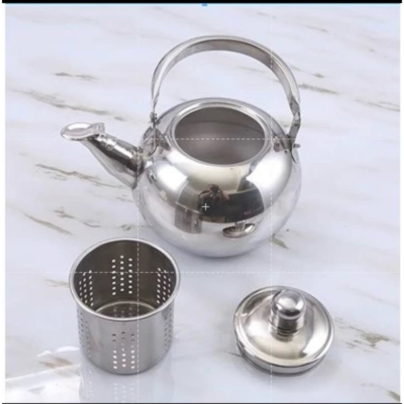 Teko Air Aladin 1,6 Liter Stainless Steel - Teko Teapot Bulat Dengan Saringan Teh - Teko Saji Kopi Teh Serbaguna Minimalis