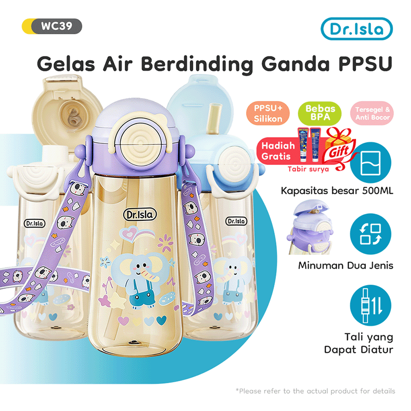 Dr.Isla Botol Minum Bayi 500ml Botol PPSU Tutup Ganda 3 in 1 Botol Minum Sedotan BPA Free WC39
