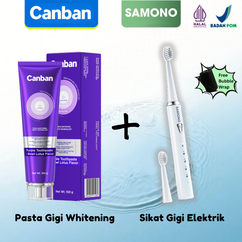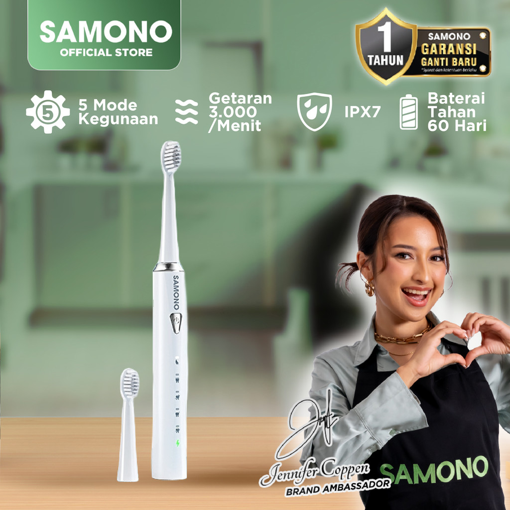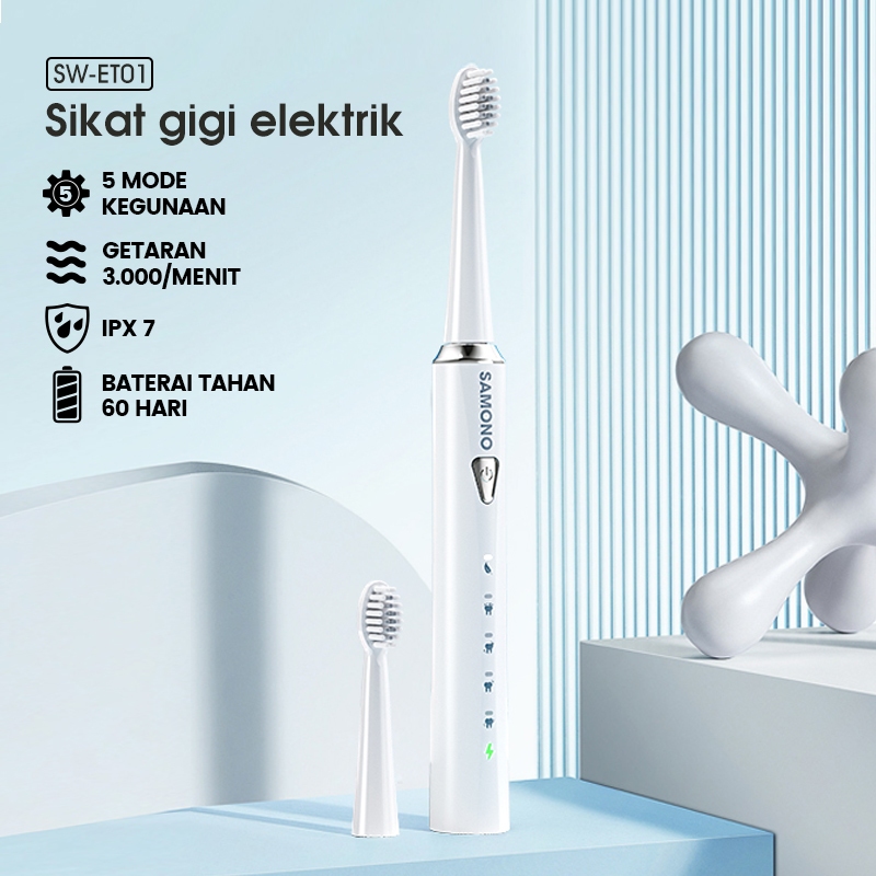 SAMONO Electric Toothbrush Sikat Gigi Elektrik Otomatis Getaran 3000 Per Menit USB Rechargeable Awet 60 Hari Waterproof IPX7 Aman Mandi 5 Pilihan Mode Kebersihan Gigi dan Gusi Garansi Resmi Bonus Kepala Sikat Tambahan ET01