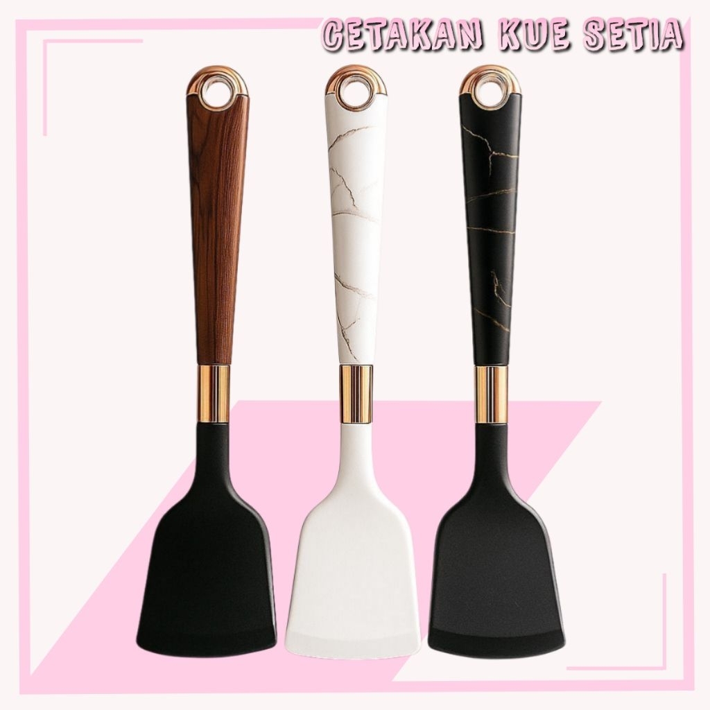 SPATULA IRUS SILIKON PREMIUM ANTI LENGKET GAGANG KAYU ELEGAN SODET SUTIL SILICONE PREMIUM TAHAN PANAS UNTUK WAJAN TEFLON / GRANIT