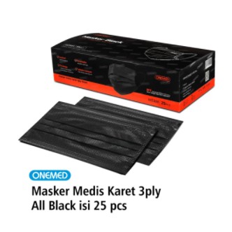 Onemed Masker Karet Medis 3ply All Black Box Isi 25 OB